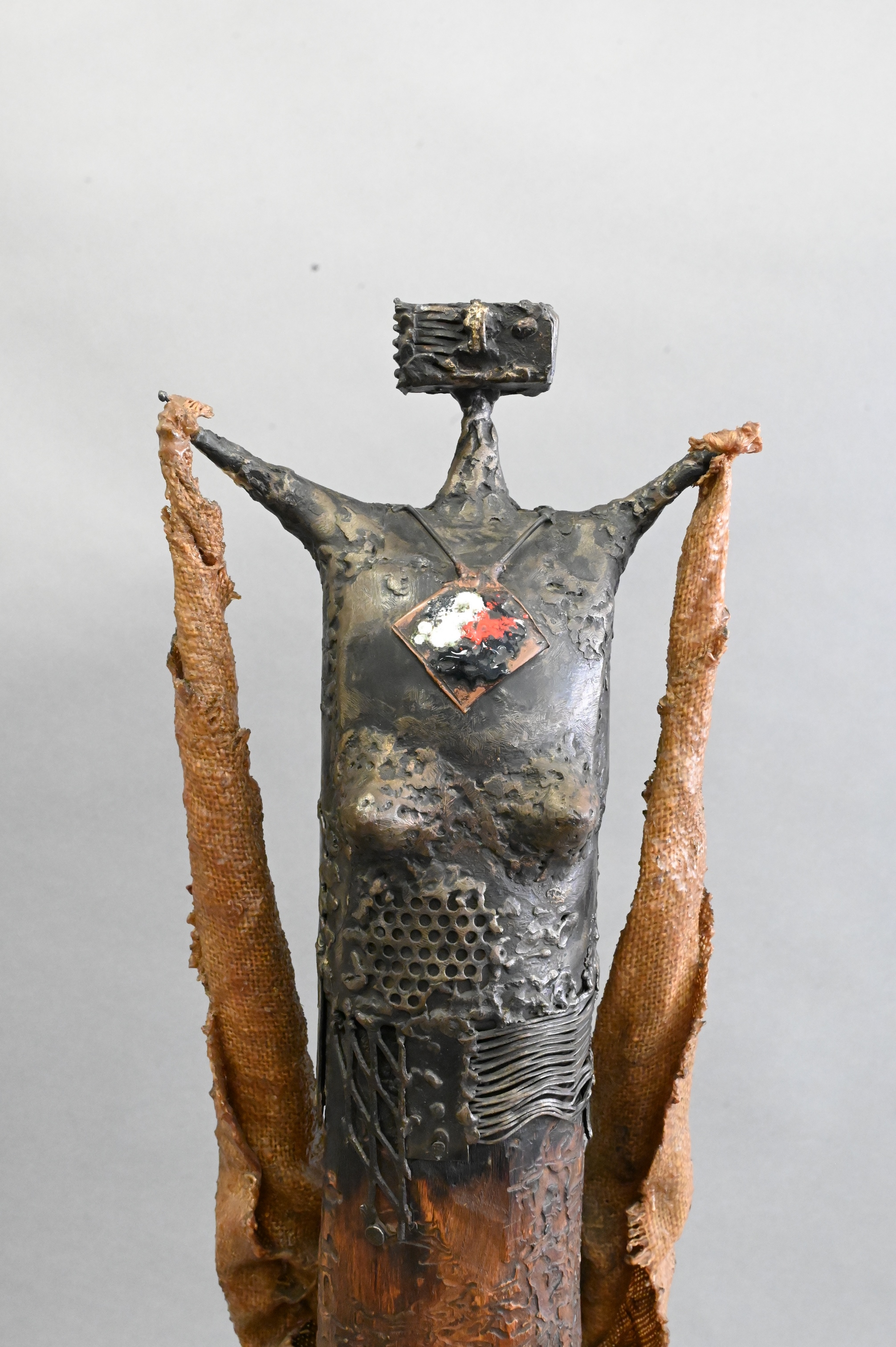 Francisco Stockinger (b. 1919), iron with wood resinated fabric and metal, standing figure of a woman, initialed on base, height 38 3/4 inches. Provenance: Christie’s lot 81A 12/2/2016.