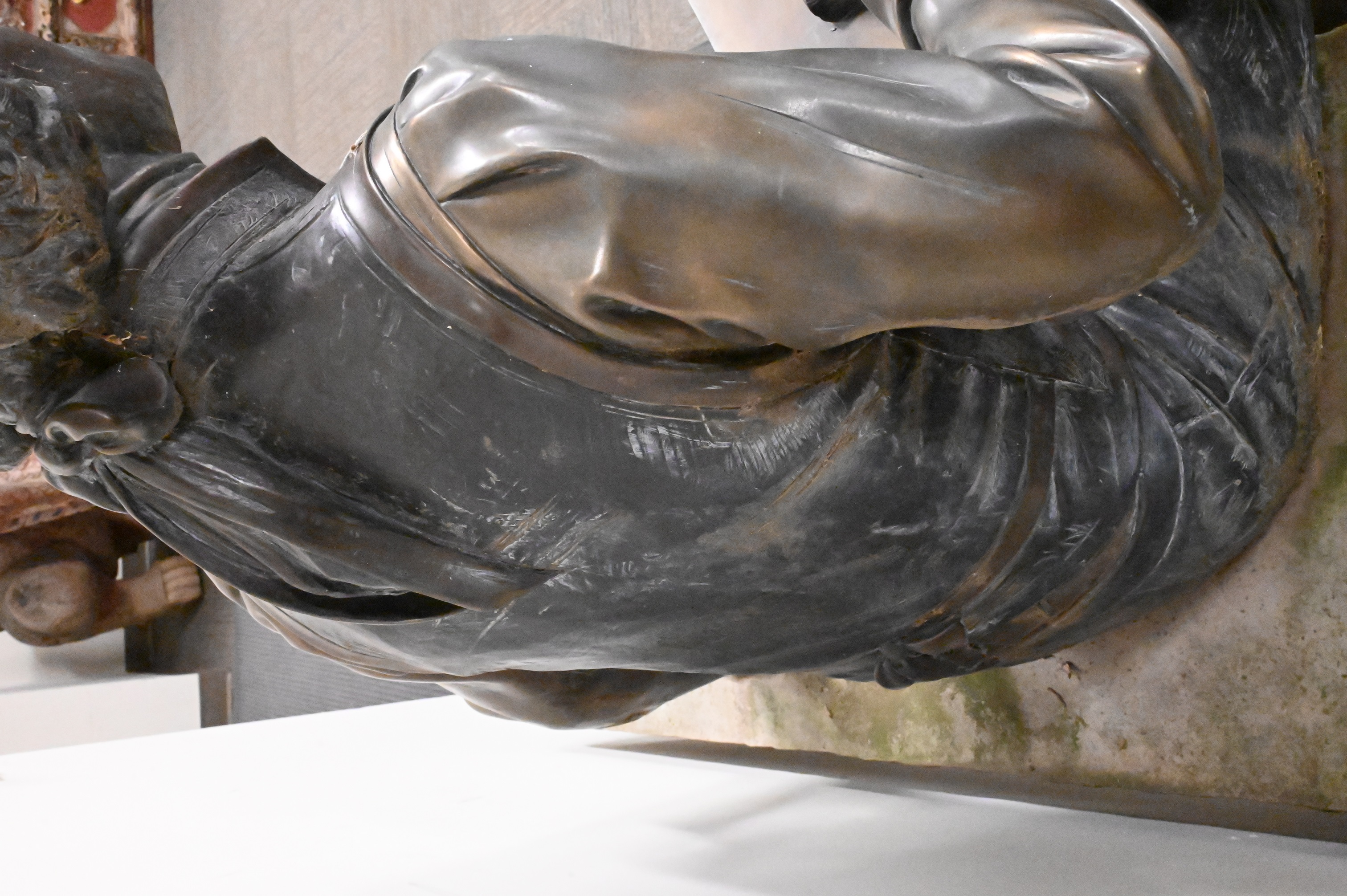 Patinated bronze and cement