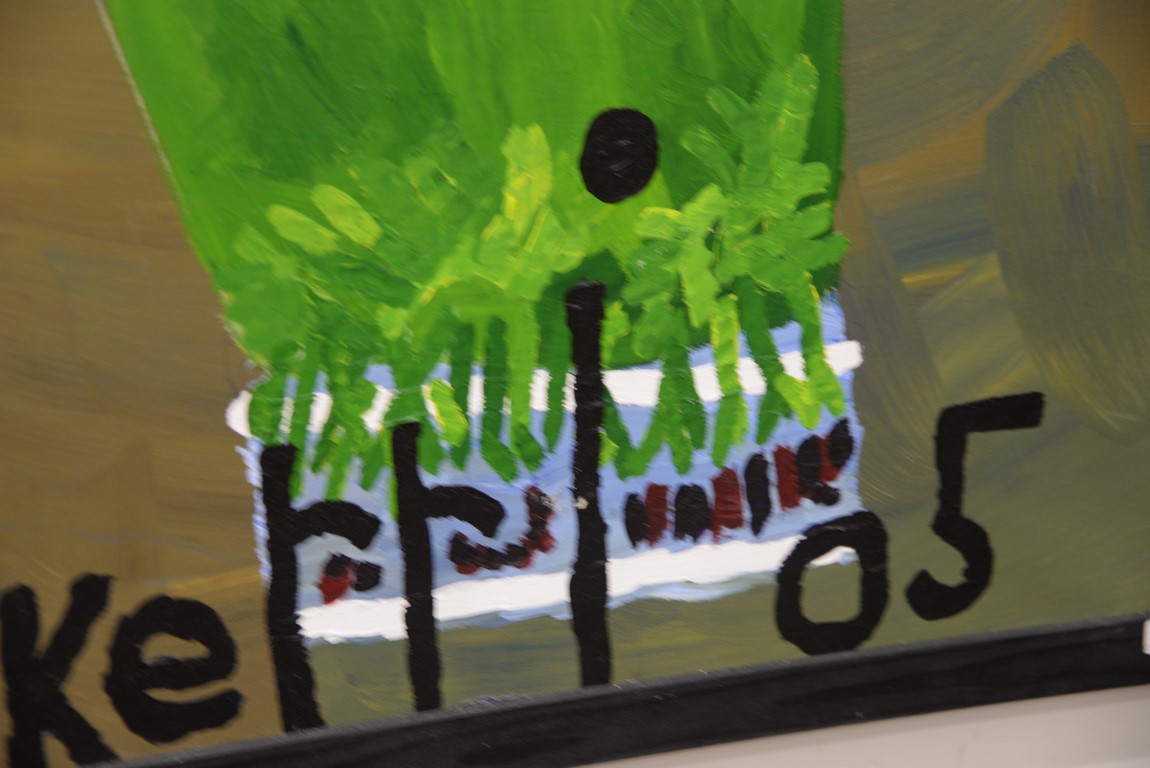 Lot 410: Kerri Quirk 20th century oil on canvas pink paper white signed lower left Kerri 05′, 24 x 18.