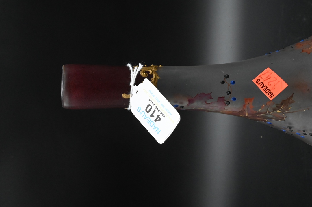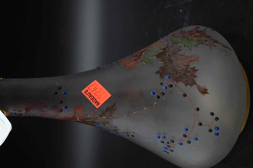 Mt. Washington Royal Flemish Glass Vase, fall leaf with berry decoration, height 12 inches. Provenance: From the Estate of Elwyn W. Lemon, Enfield, Connecticut.