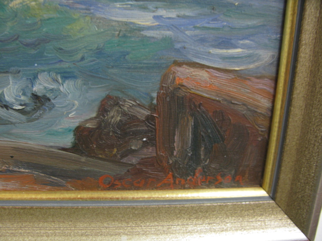 Oscar Anderson American 1873-1953, COASTAL OCEAN SCAPE, oil on board, signed lower right Oscar Anderson.