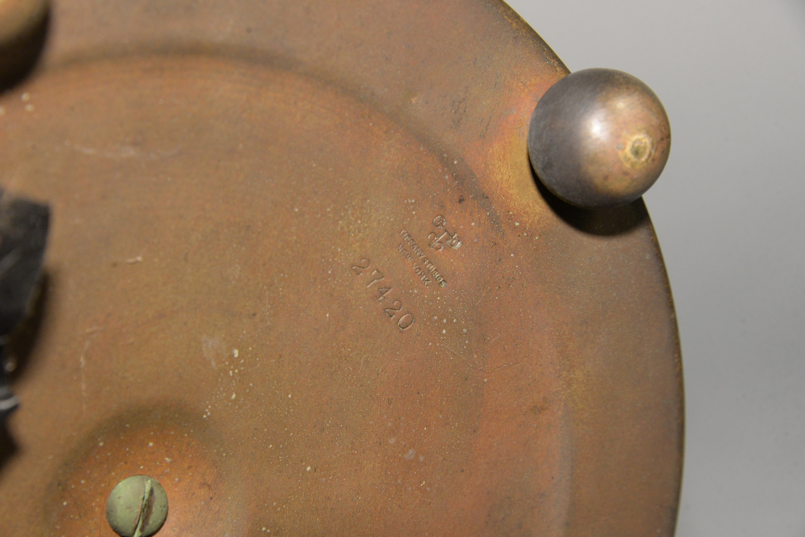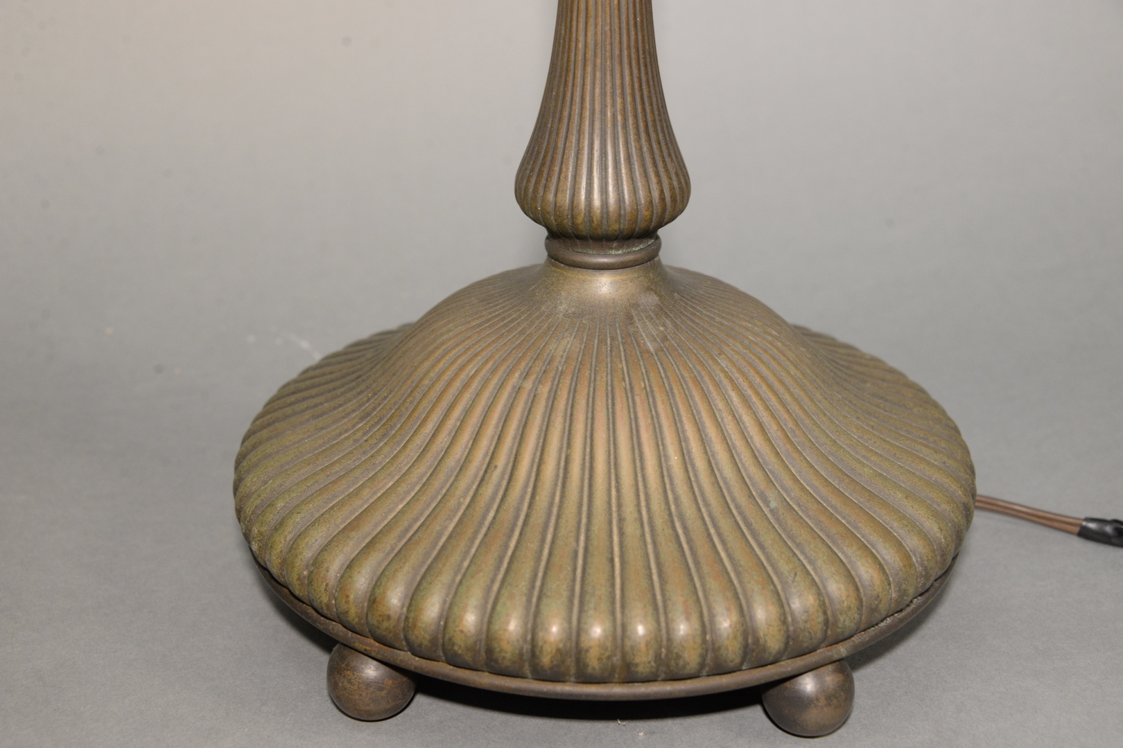marked Tiffany Studios, New York 27420, on ribbed bronze base