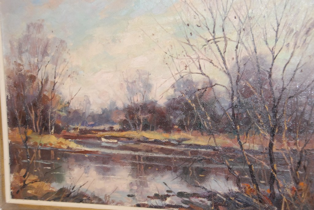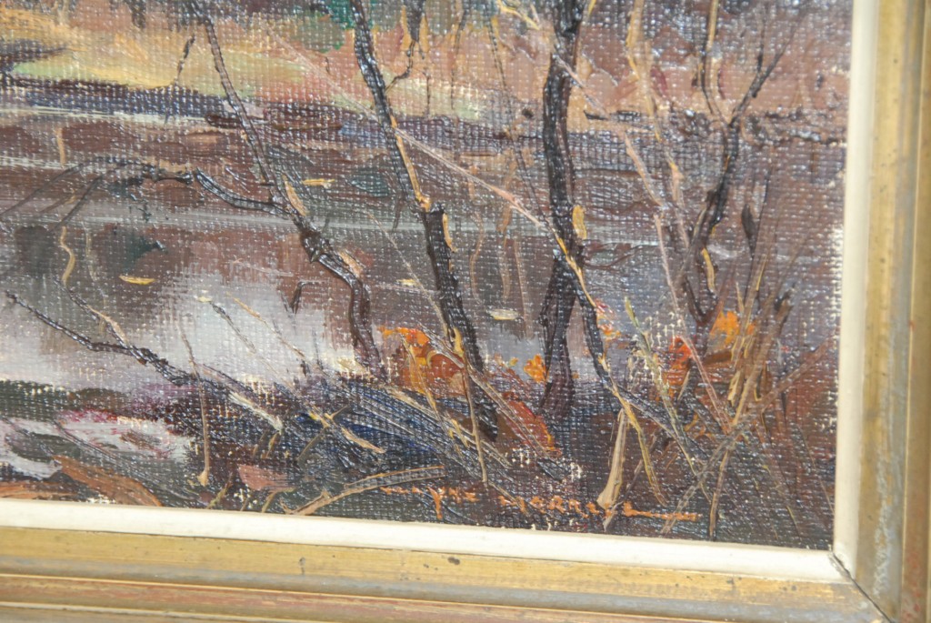 Wayne Beam Morrell 1923- FARMINGTON RIVER oil on board signed lower right Wayne Morrell 14 x 20
