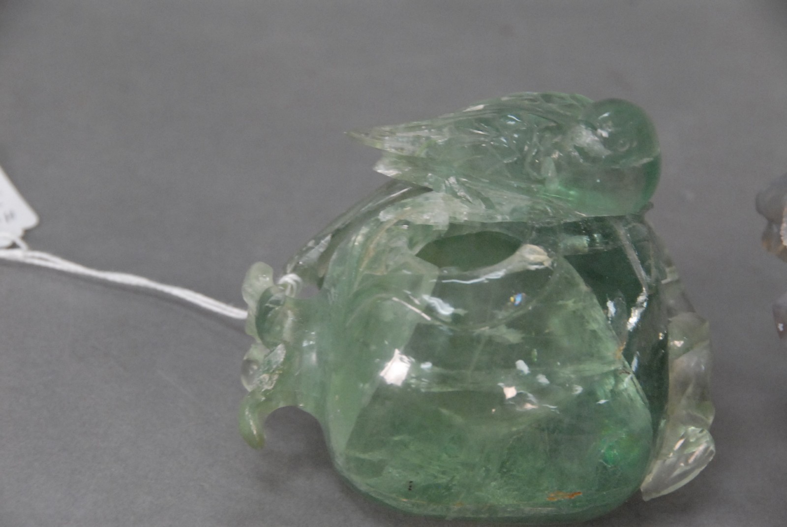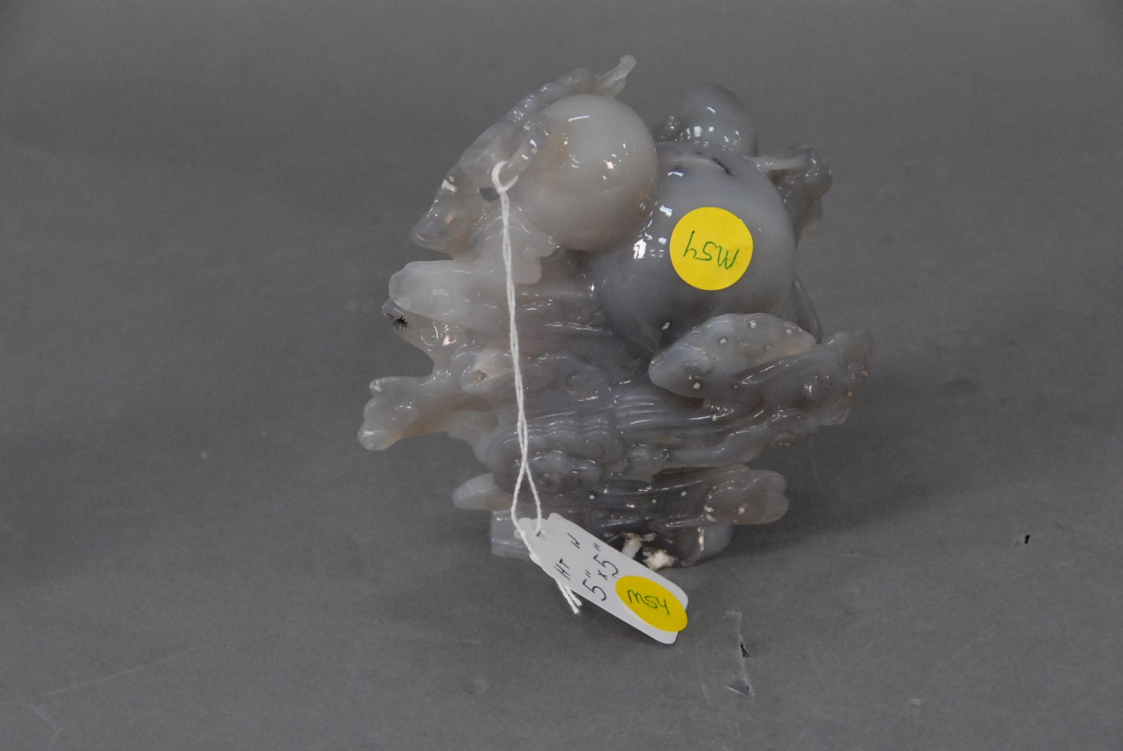 Agate old man with staff and a green quartz brush pot, brush pot as is.