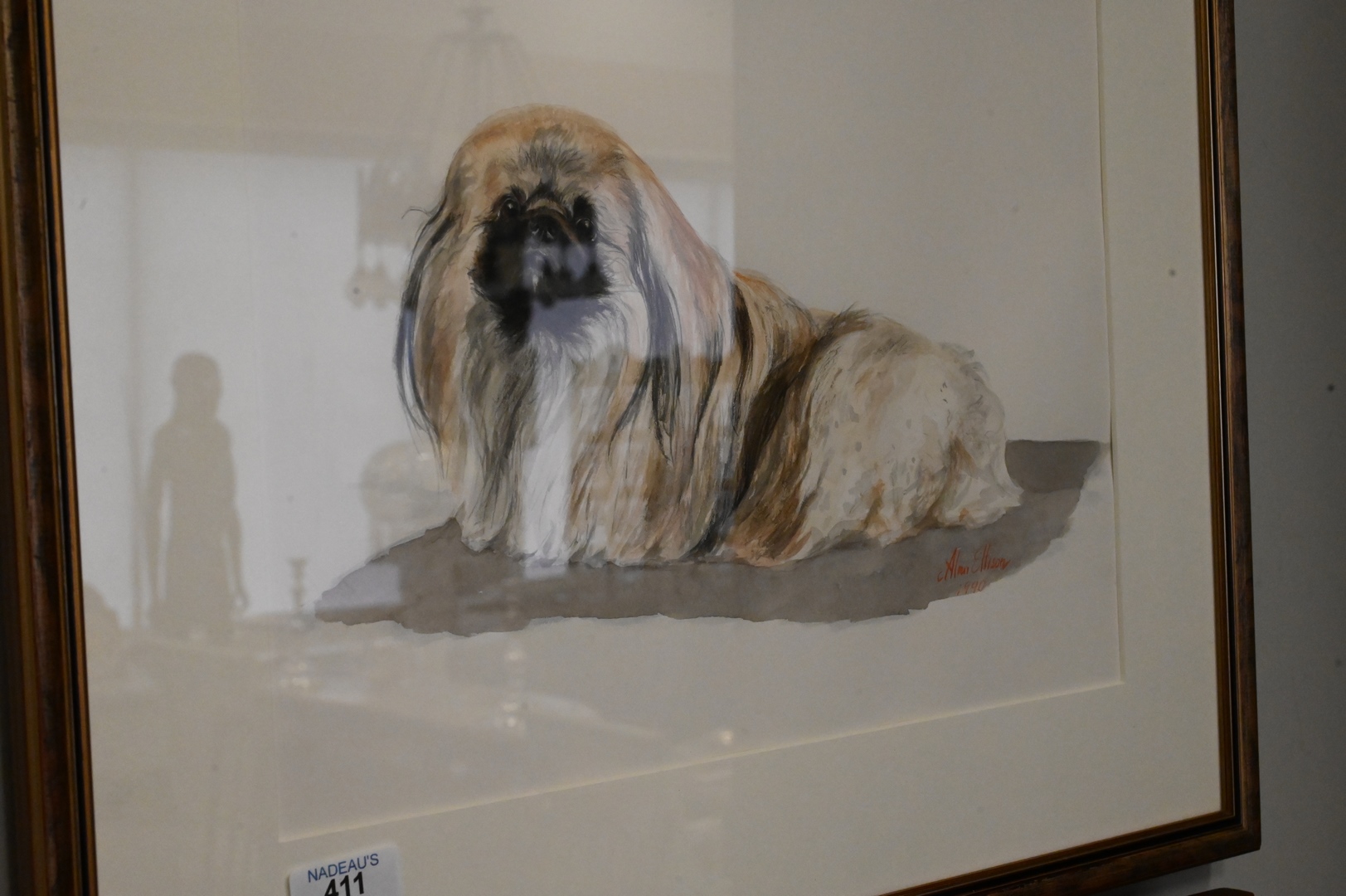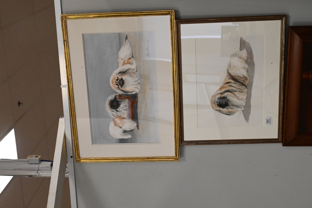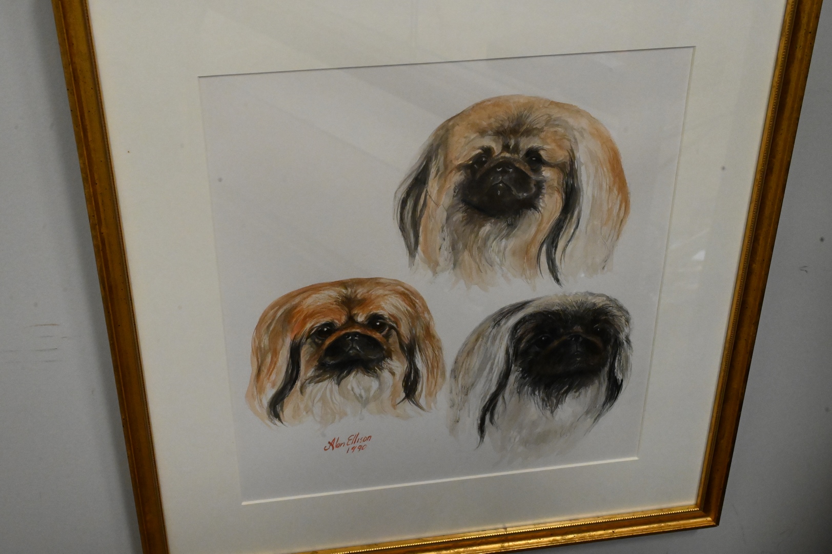 Group of Four Alan Ellison 20th Century Pieces, to include “Puck and Simba” 1987, 11 1/2″ x 18 1/2″, “Tinkerbelle on Red Carpet” 1989, oil on canvas, “Simba” 1990, watercolor 11″ x 141/2″, “Puck, Simba and Tinkerbelle” 1990, watercolor, 14″ x 12 1/2″, all signed and dated.