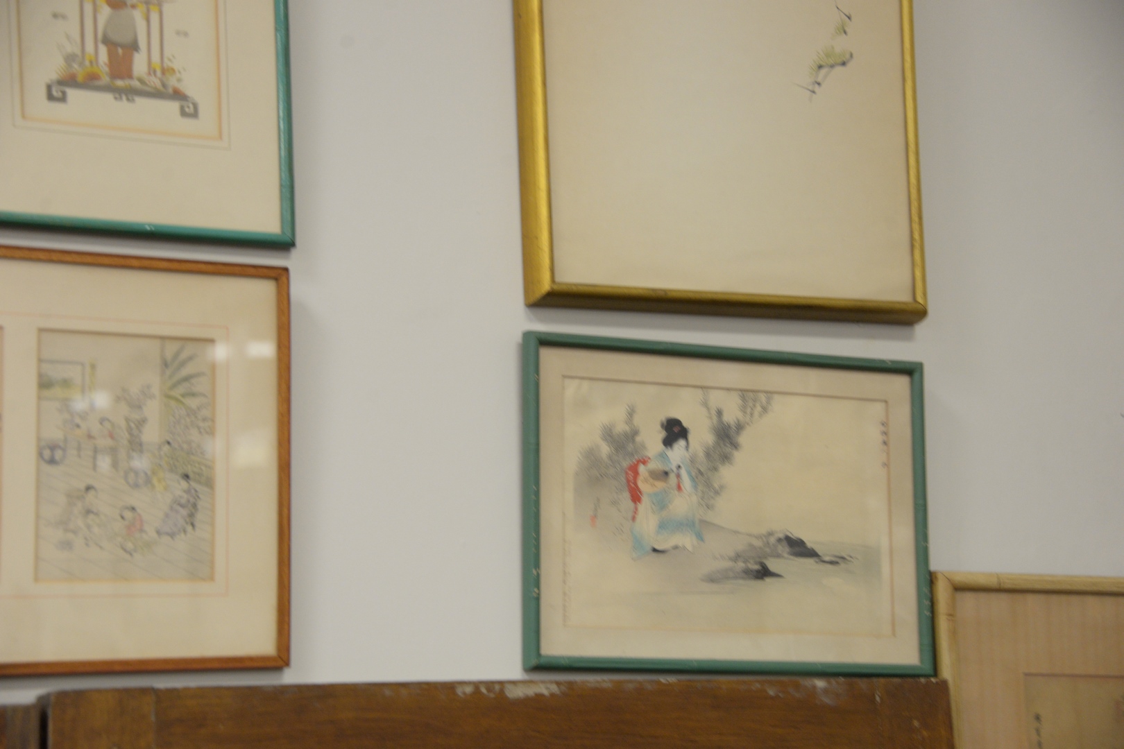 Group of Ten Oriental Woodblock Prints, Watercolors and Lithographs