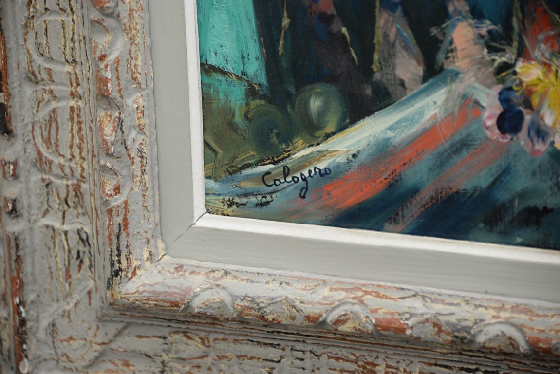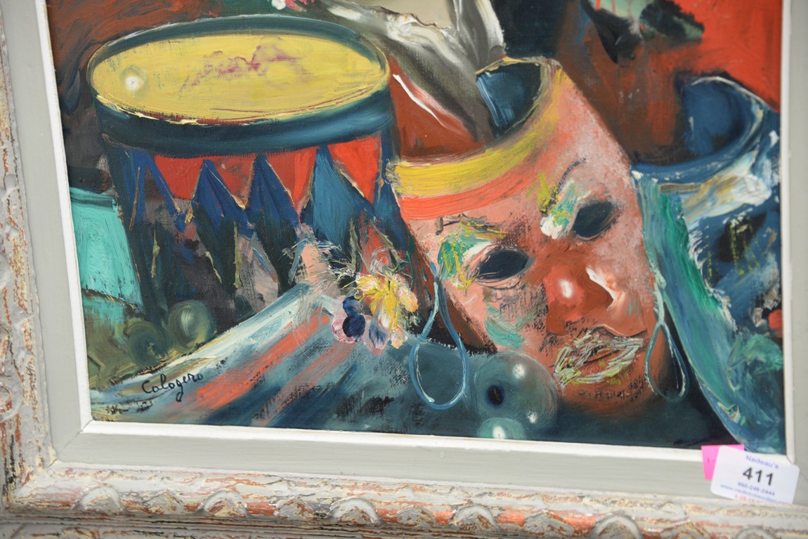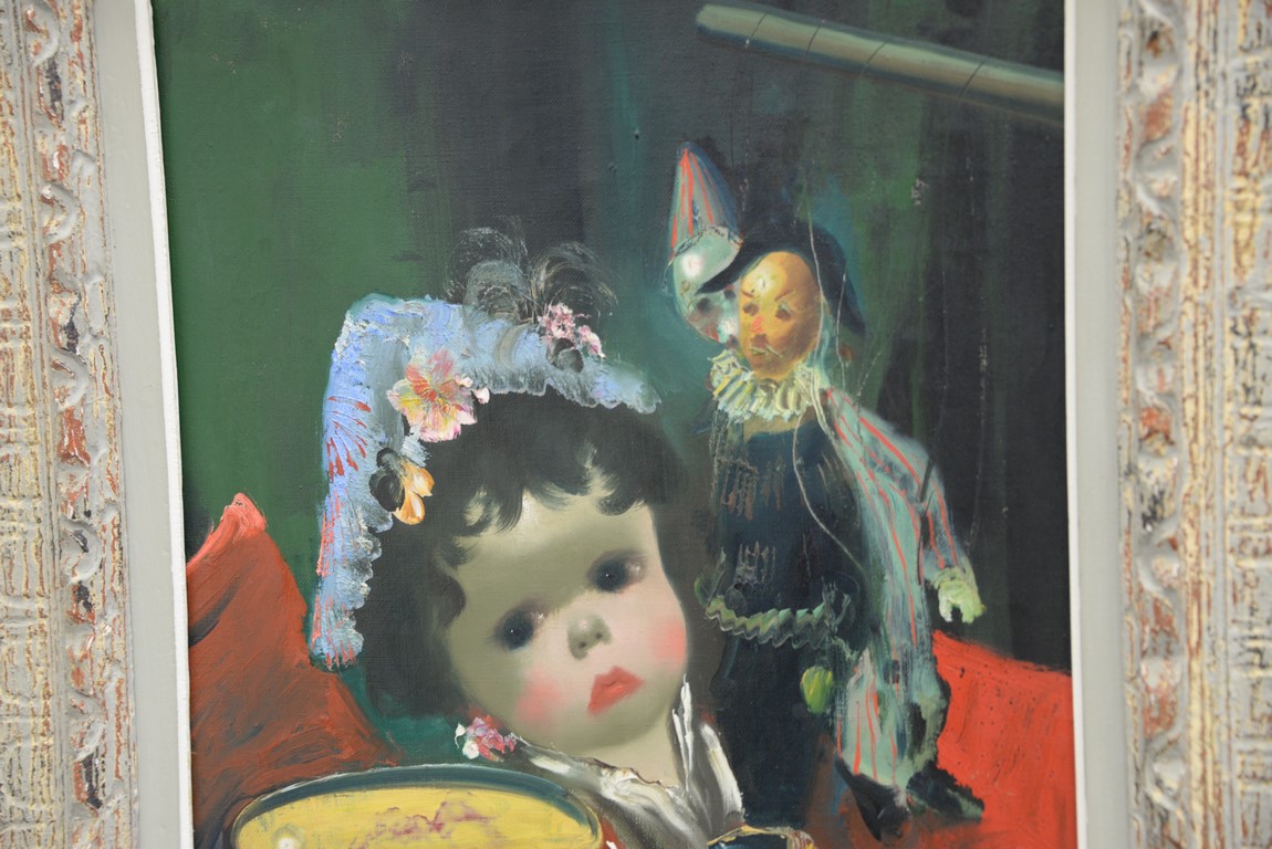Jean Calogero 1922-2001 oil on canvas doll with drum signed lower left Calogero. 21 x 14