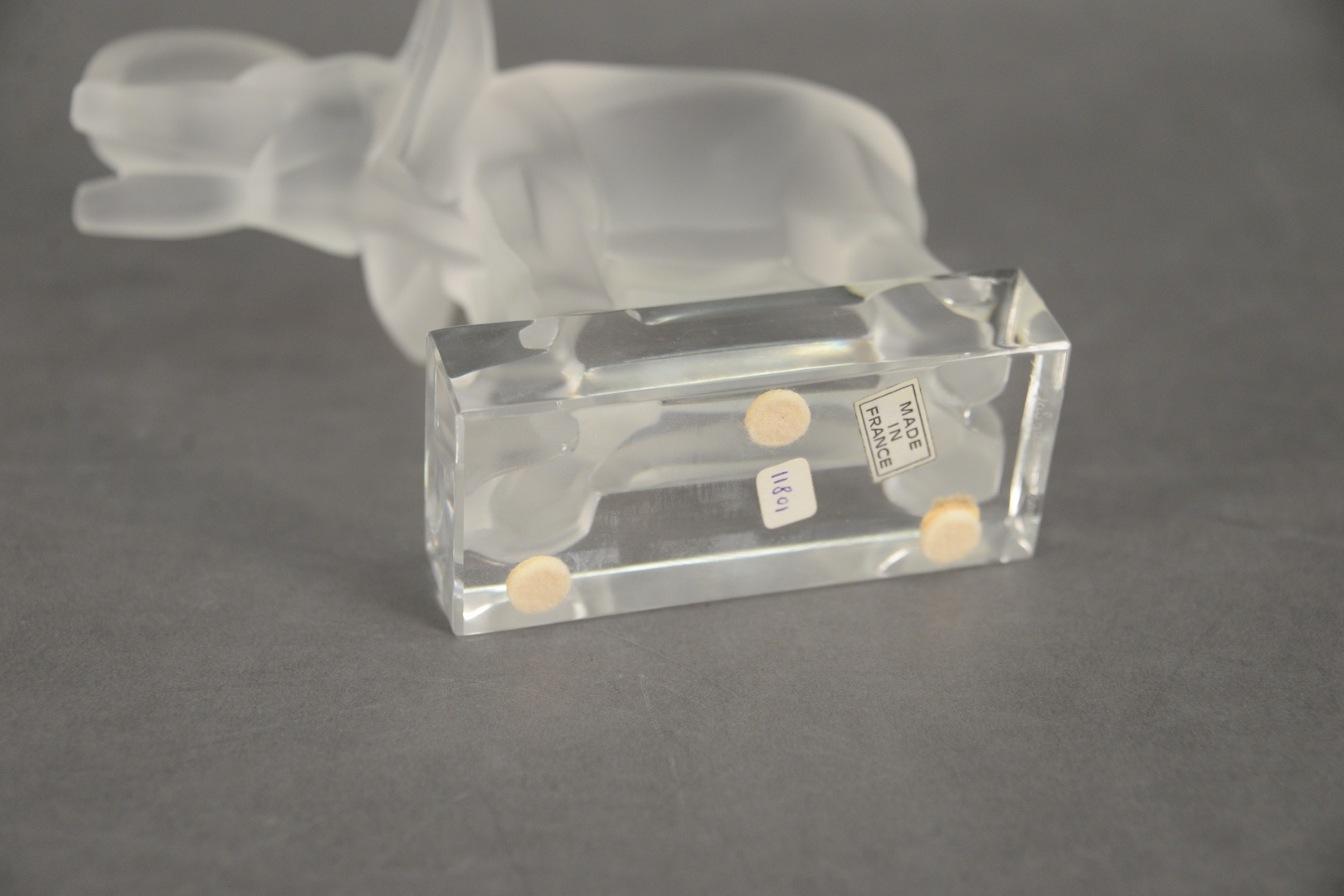 Lalique Frosted Glass Elephant Paperweight, signed to the underside, in original fitted box, height 6 1/4 inches.