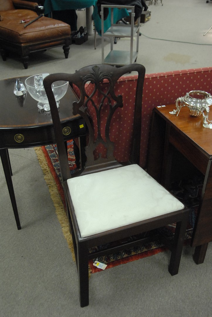 Pair of custom mahogany Chippendale style side chairs, benchmade.