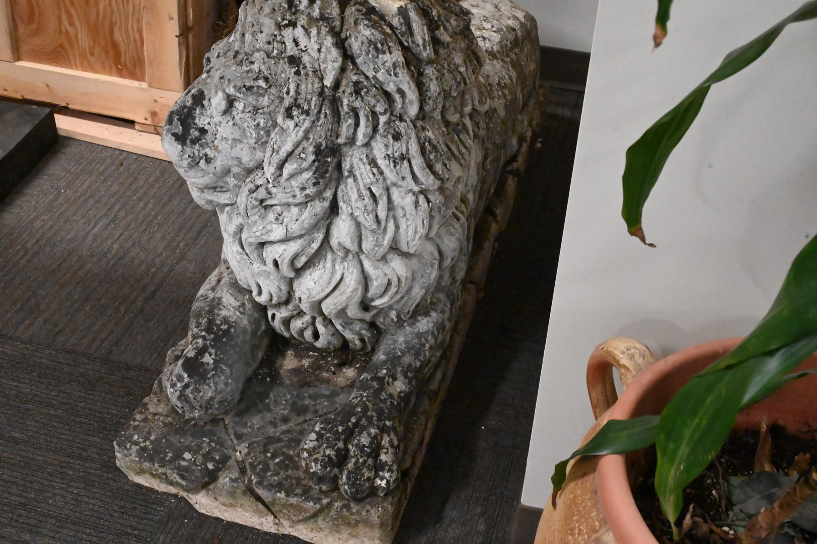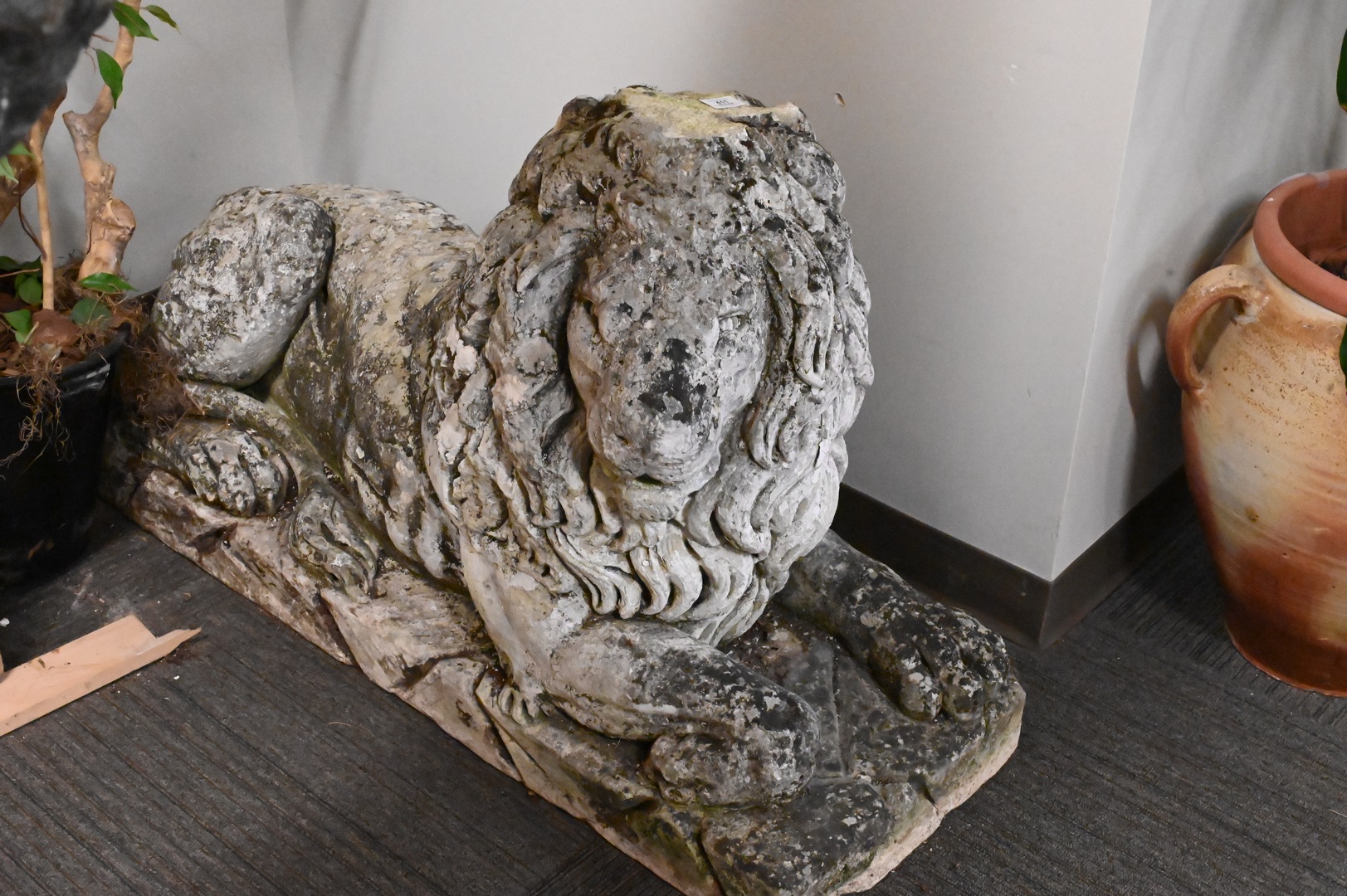 Lot 411: Pair of Recumbent Lion Outdoor Cement Figures