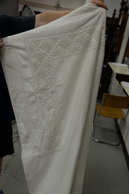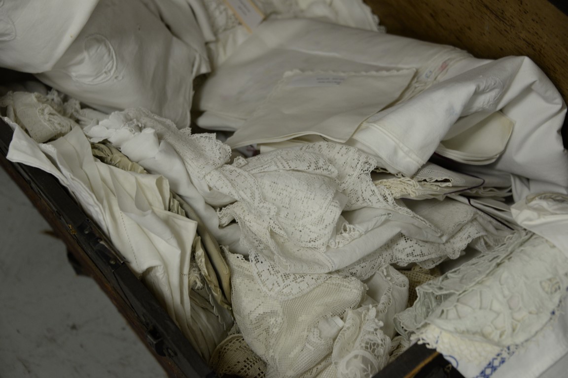 Trunk with table linens.