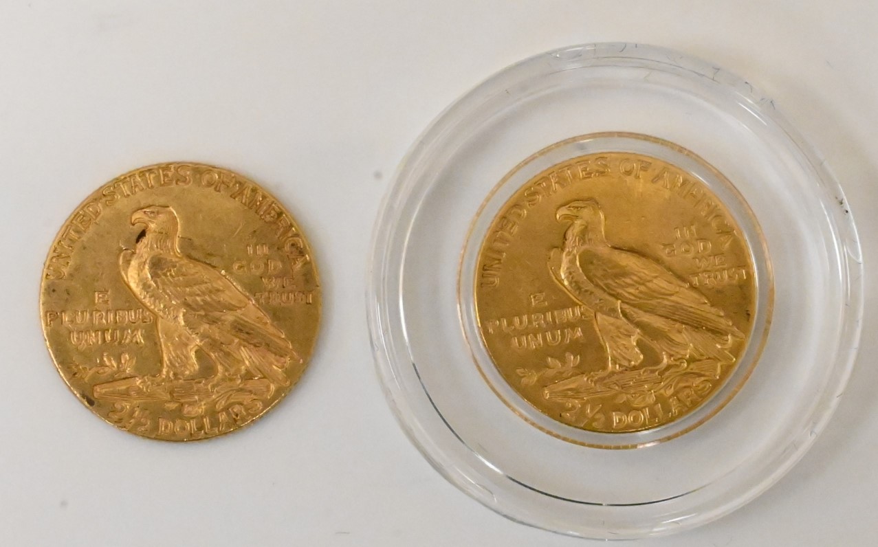 Two Gold Indian Coins, to include 1908 2 ½ dollar Indian AU, along with a 1910 2 ½ Indian AU