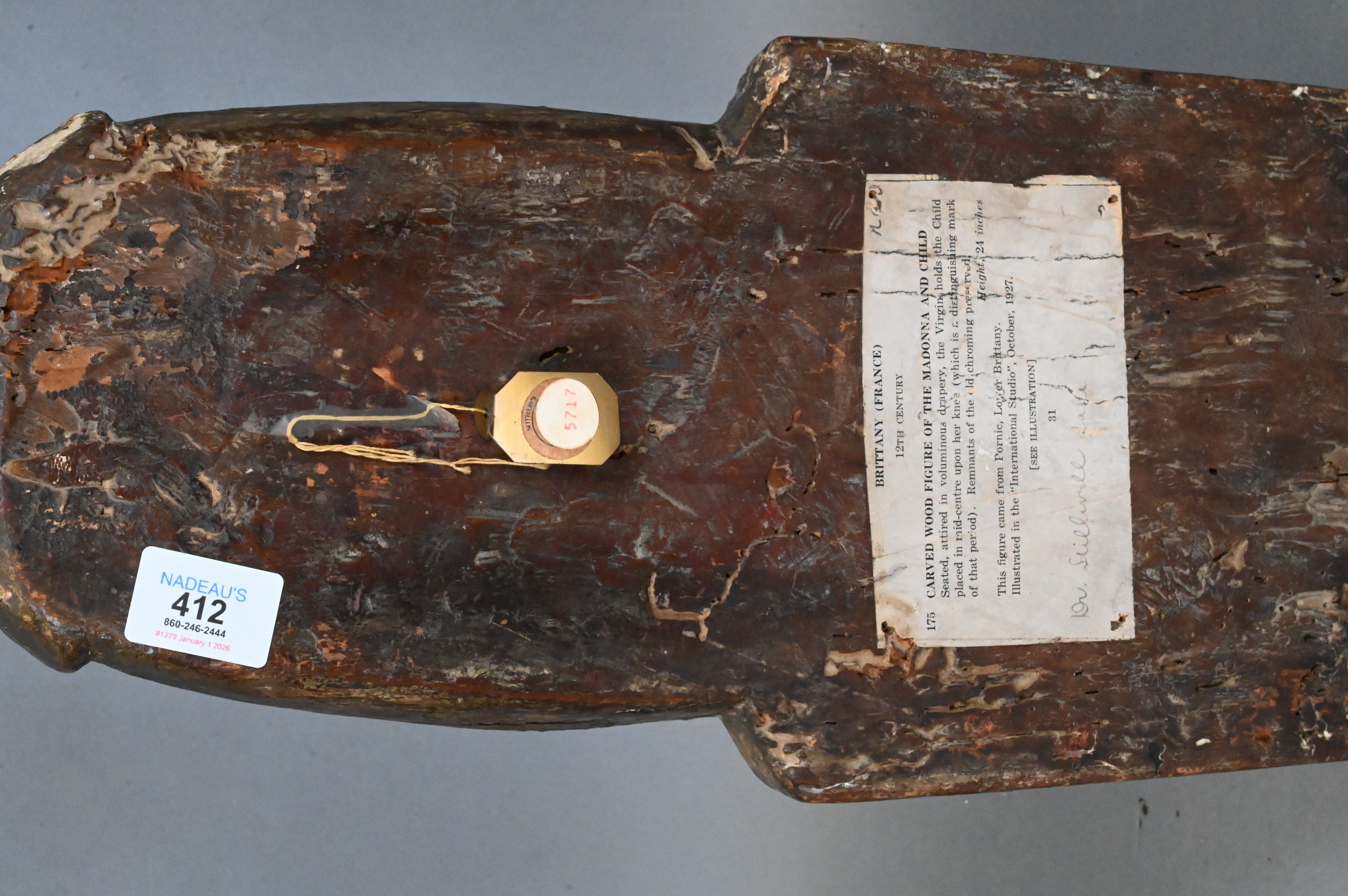 Lot 412: Carved and Polychrome Wooden Figure of the Madonna and Child, 12th Century