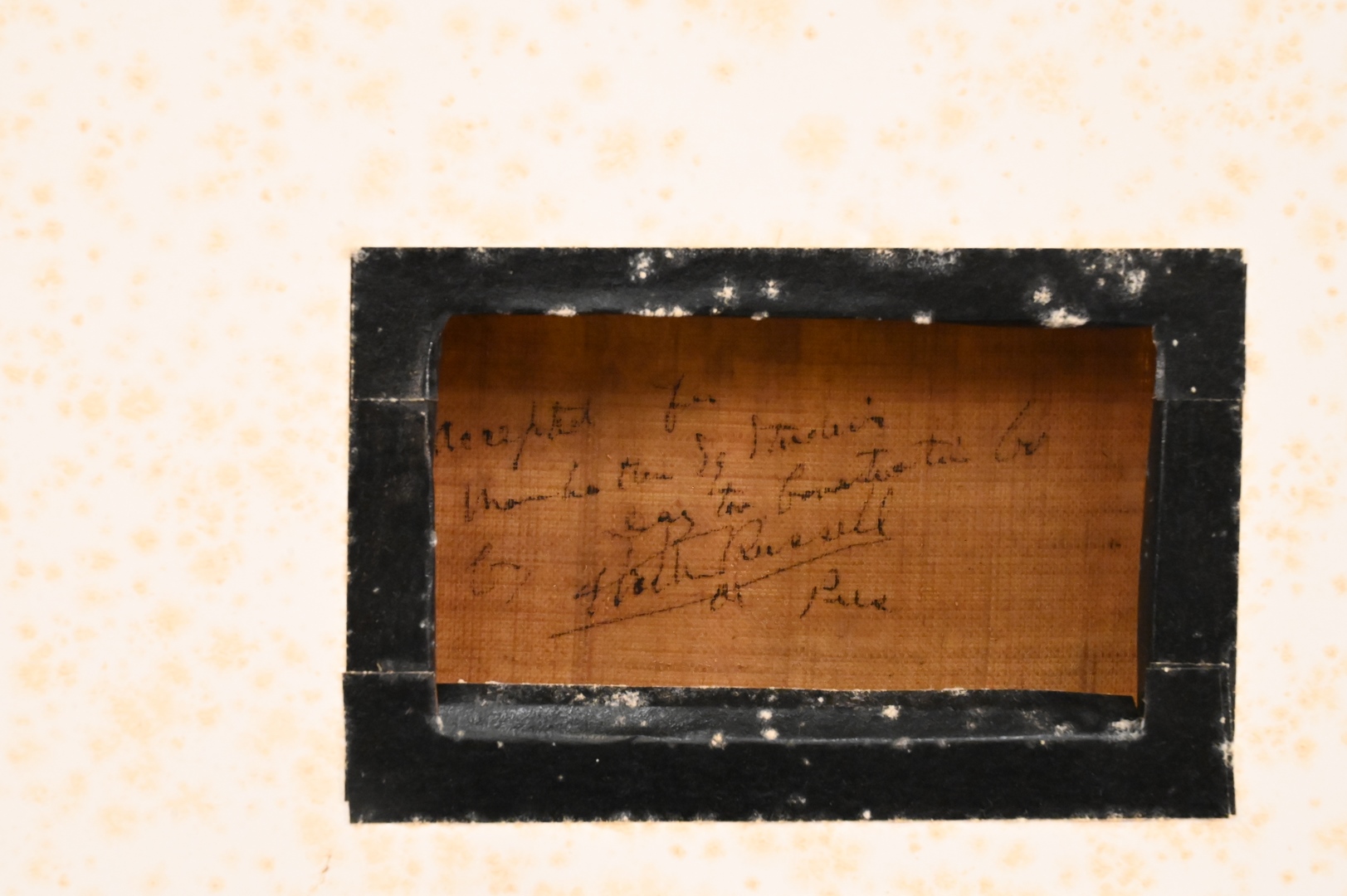 inscription on back reads “accepted for Manhattan square station by Layton Construction Co Hattie Russell”
