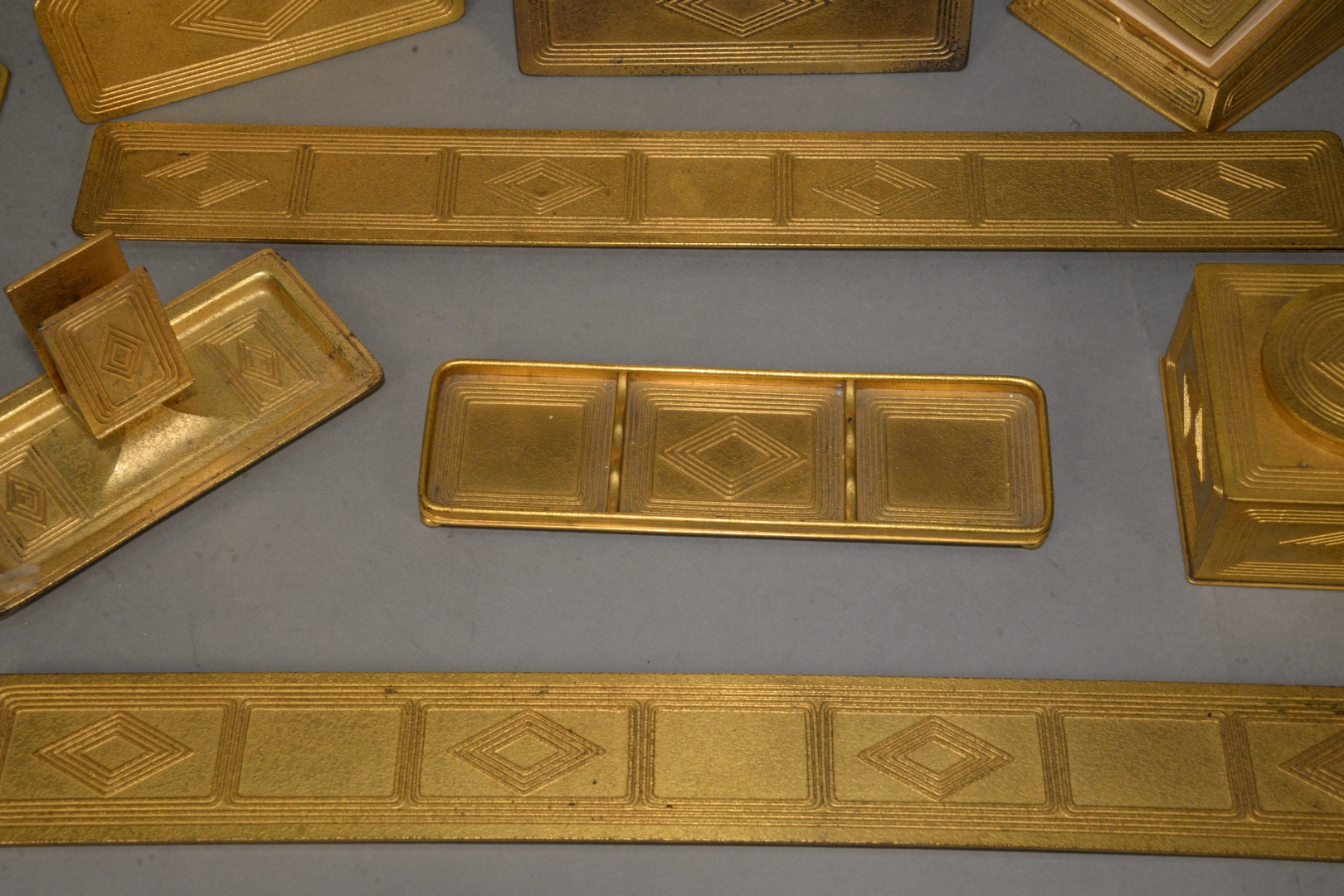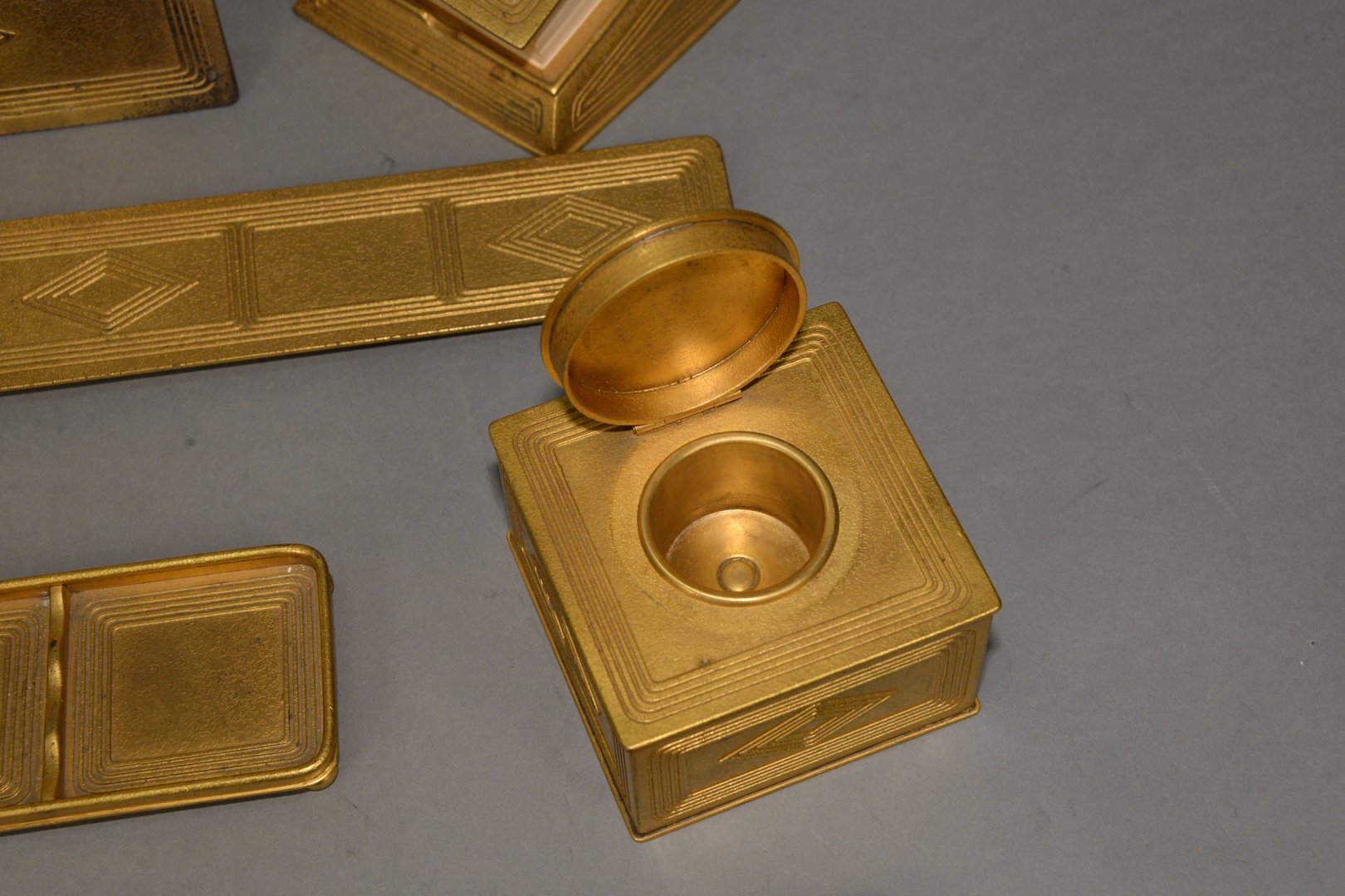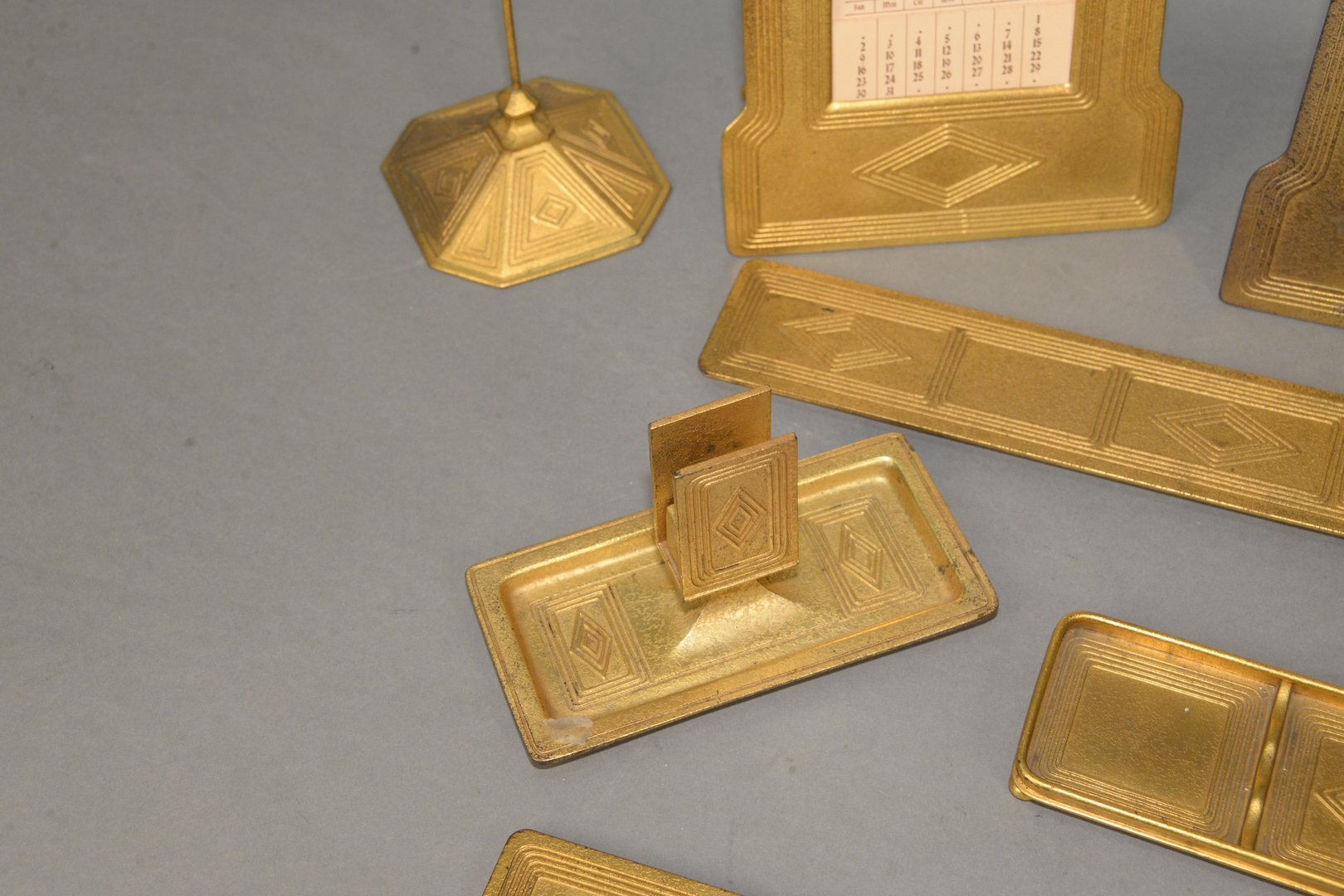 Nine Piece Tiffany Studios Graduate Gilt Bronze Desk Set