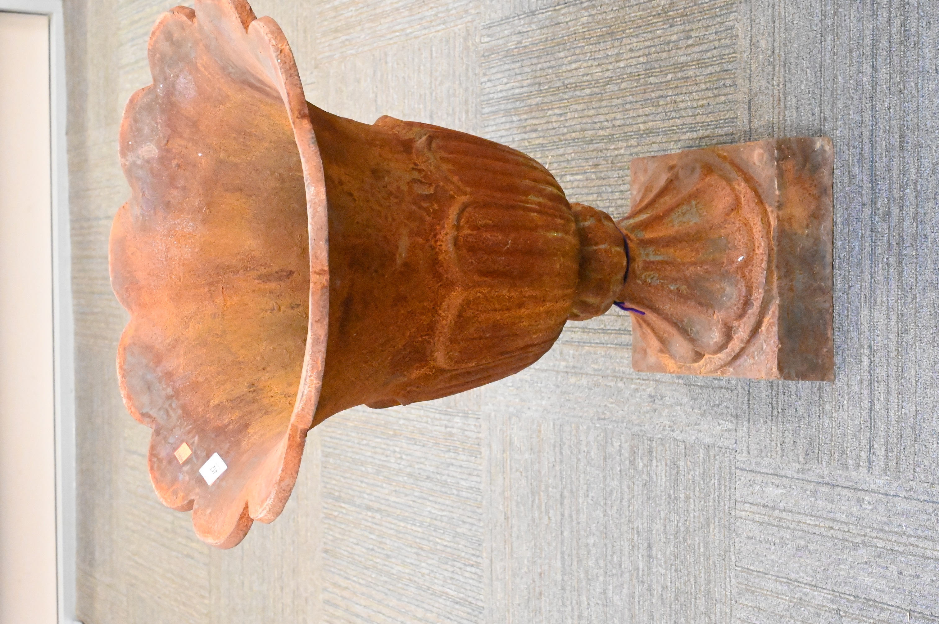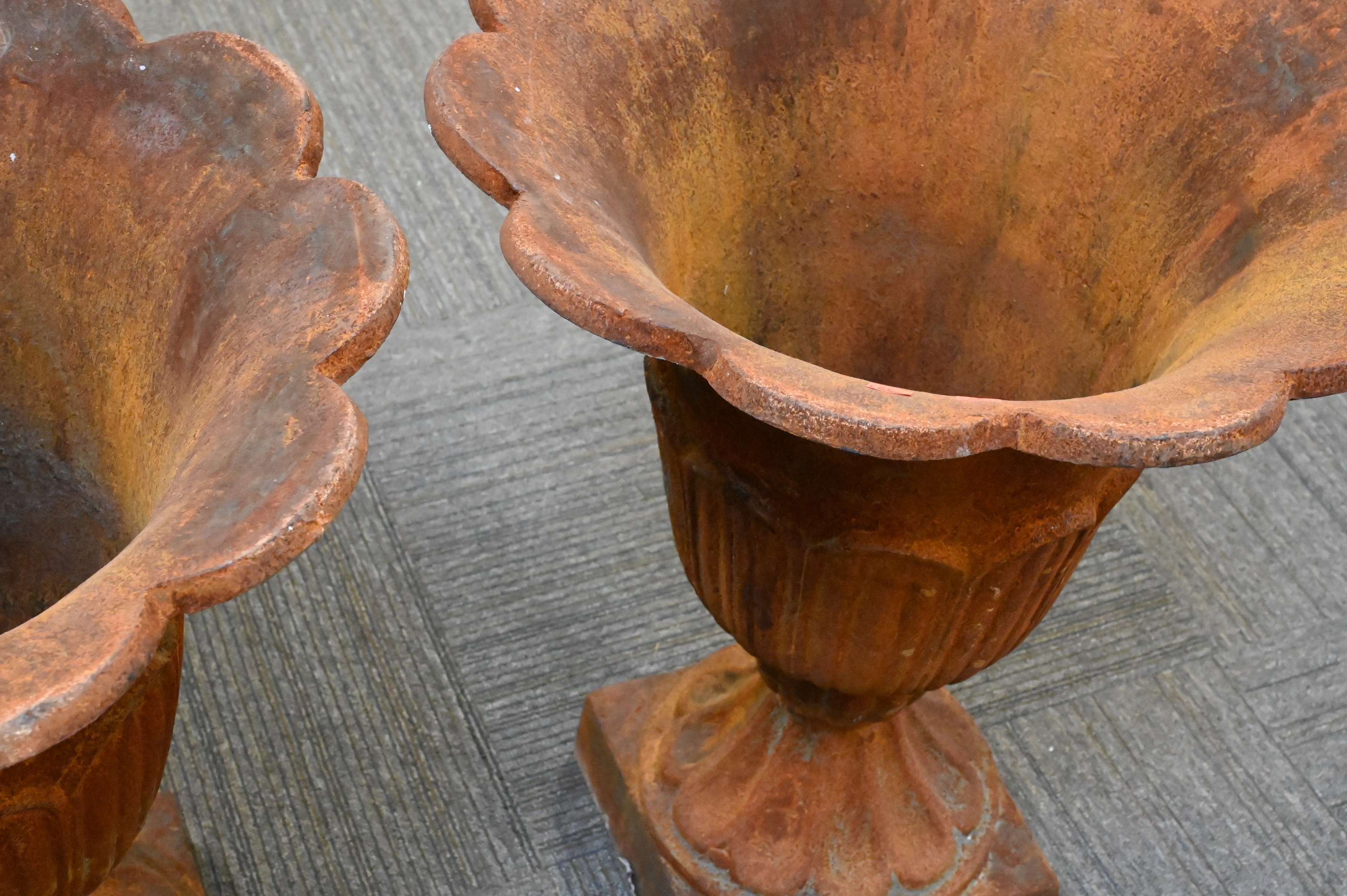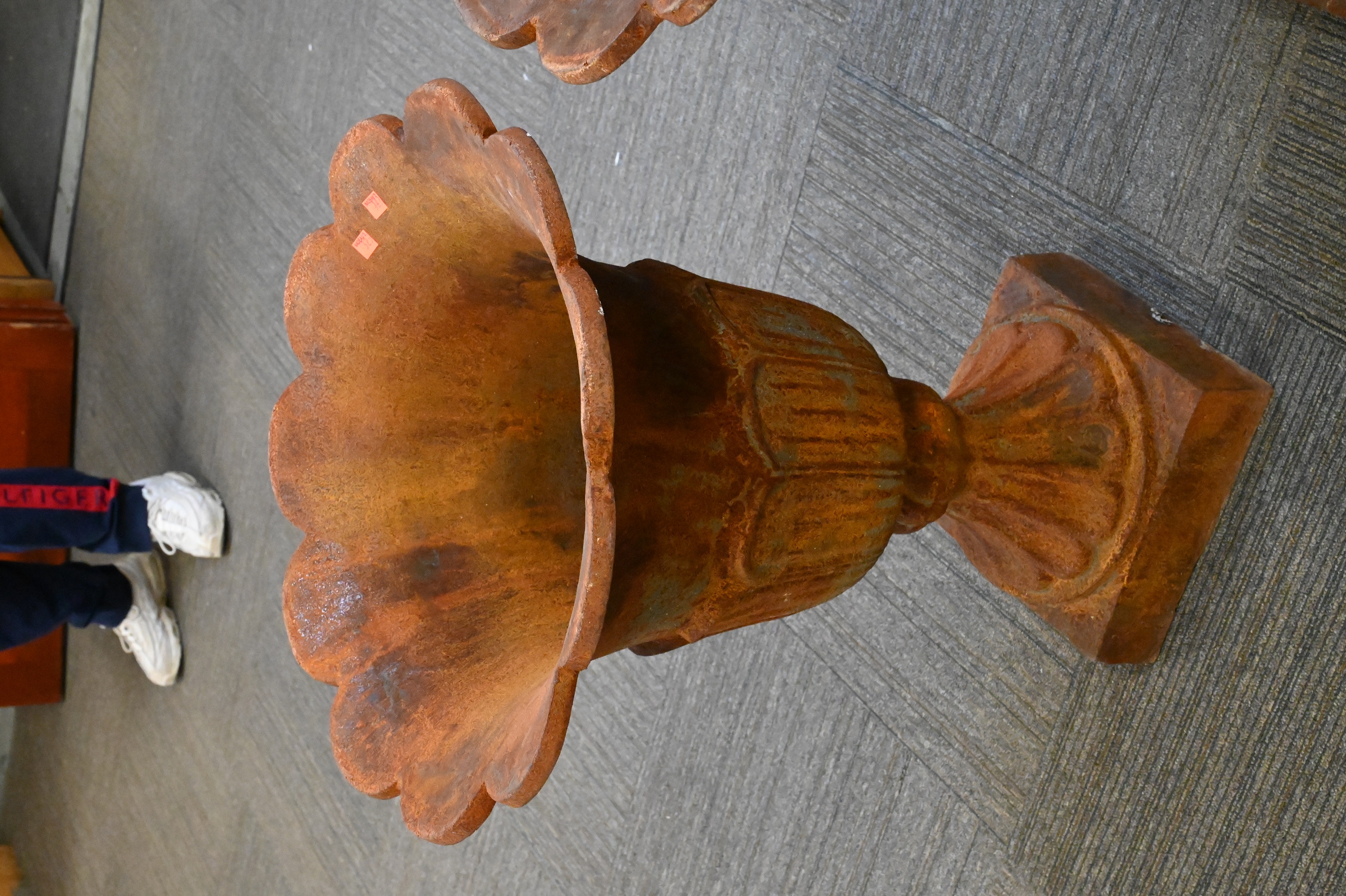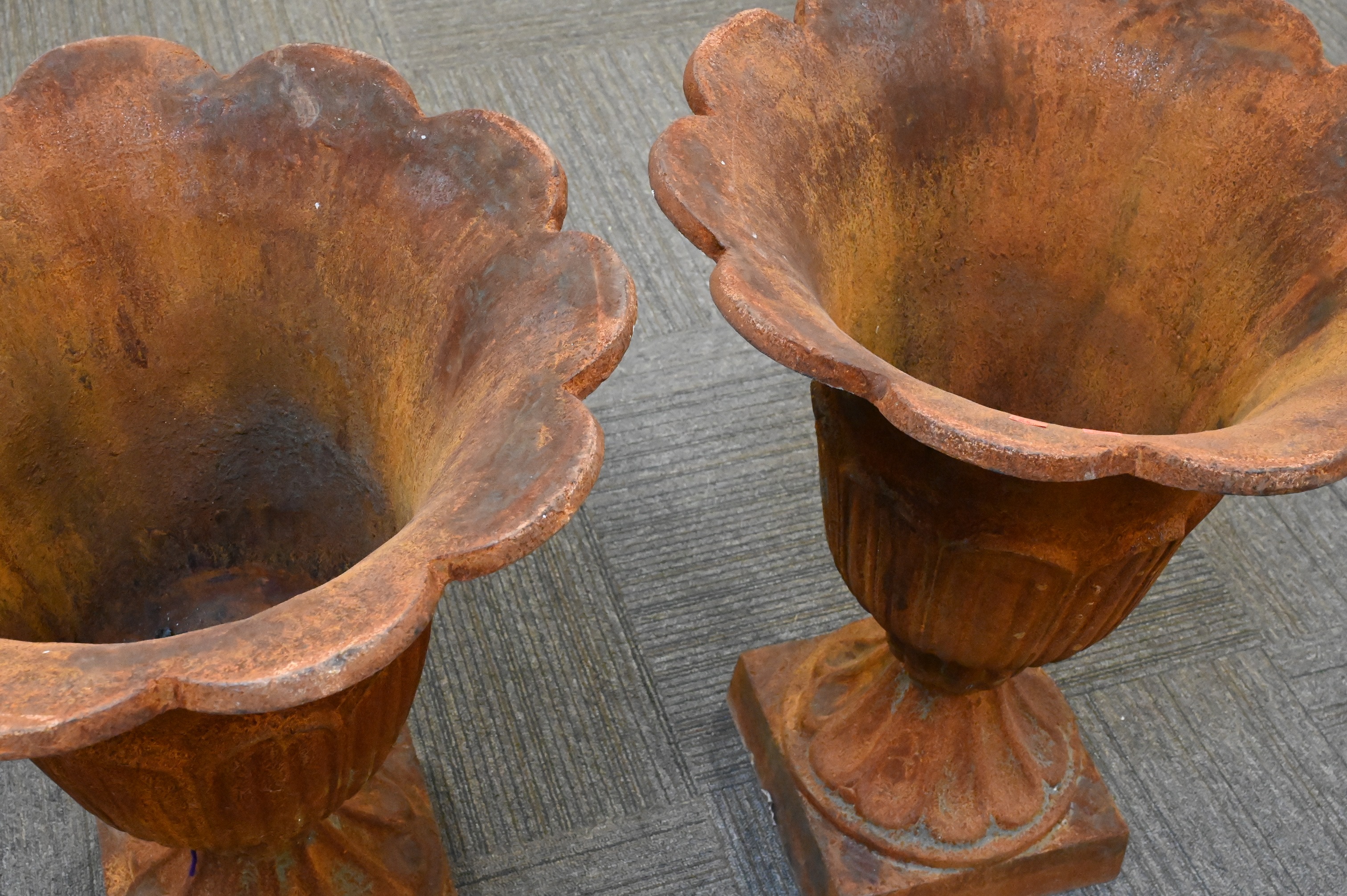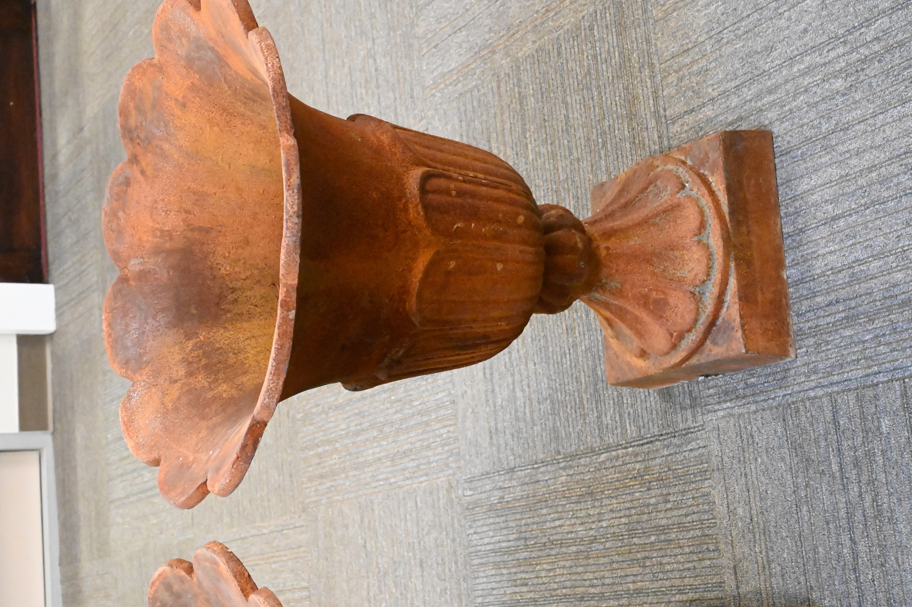 Lot 412: Pair of Iron Urns having Petal Tops and Square Bases