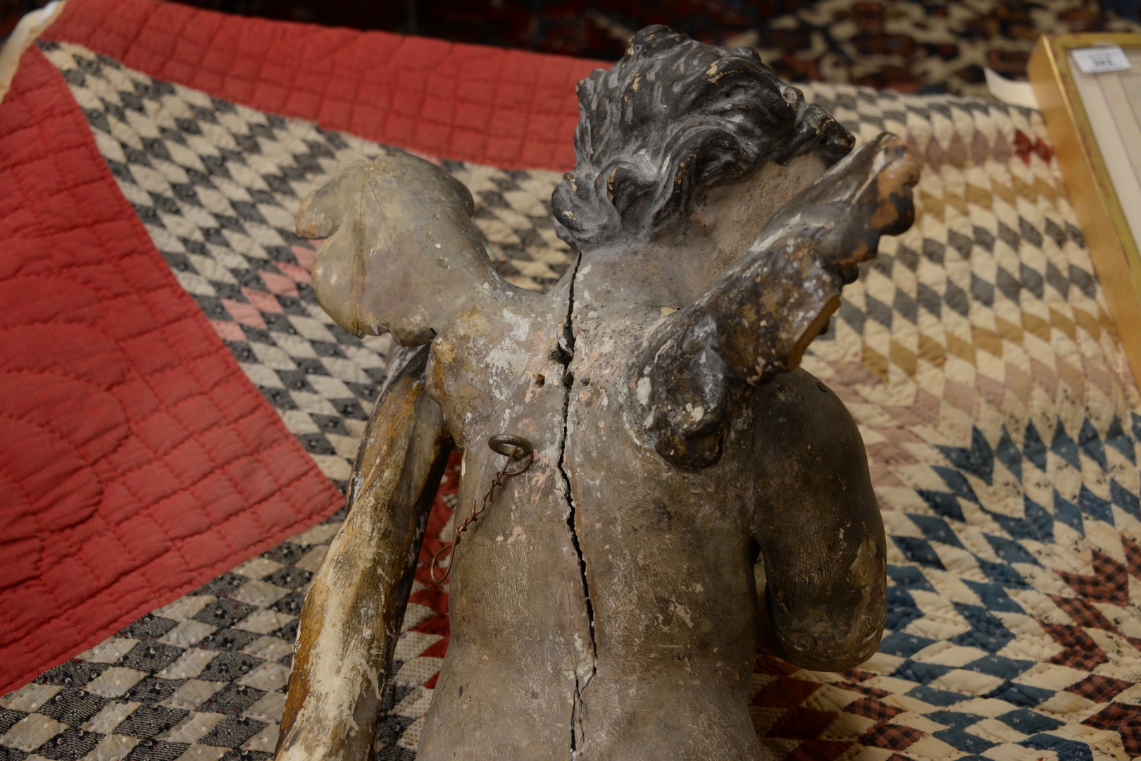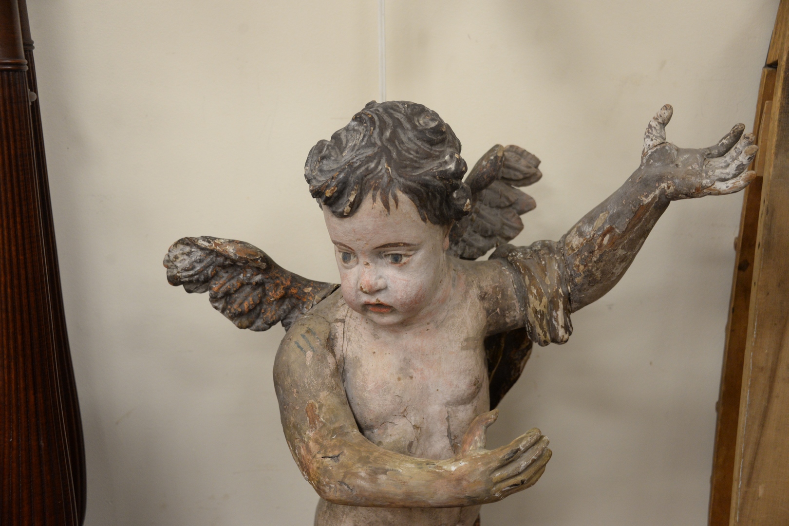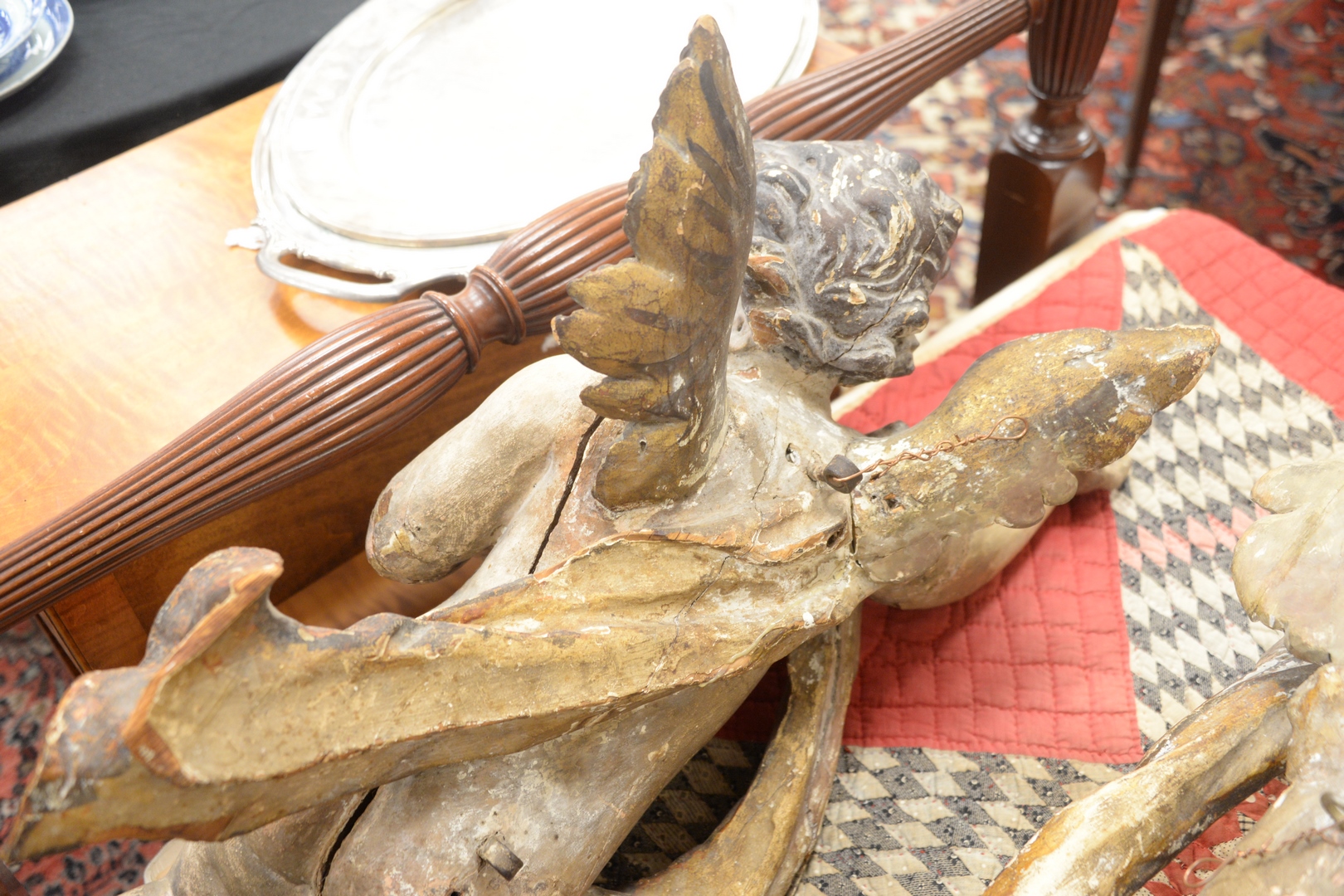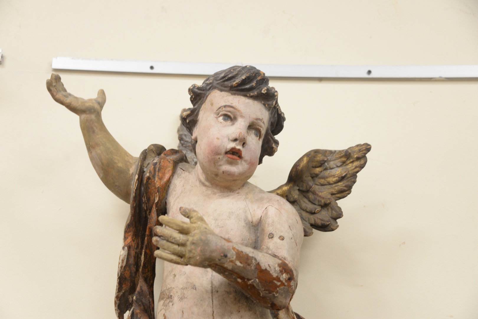 Lot 412: Pair of Italian/German Painted Cherubs, carved wood, gesso, and polychromed, probably 18th century, heights 33 and 36 inches.