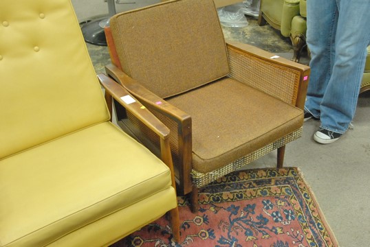 Lot 412: Three piece lot to include Danish Modern lounge chair and two Mid-Century chairs with caned sides.
