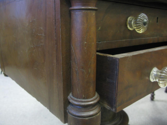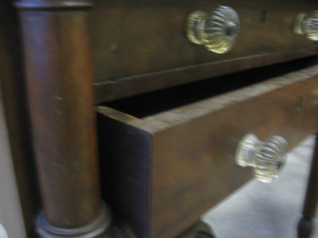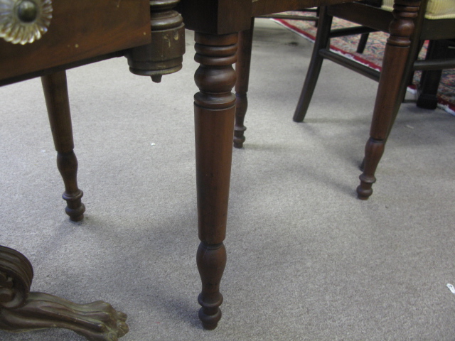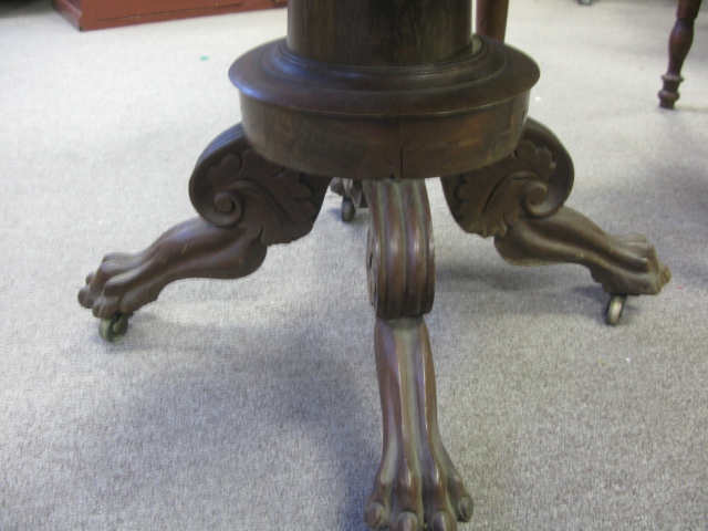Two antique stands one turned leg stand and one paw foot stand each with two drawers