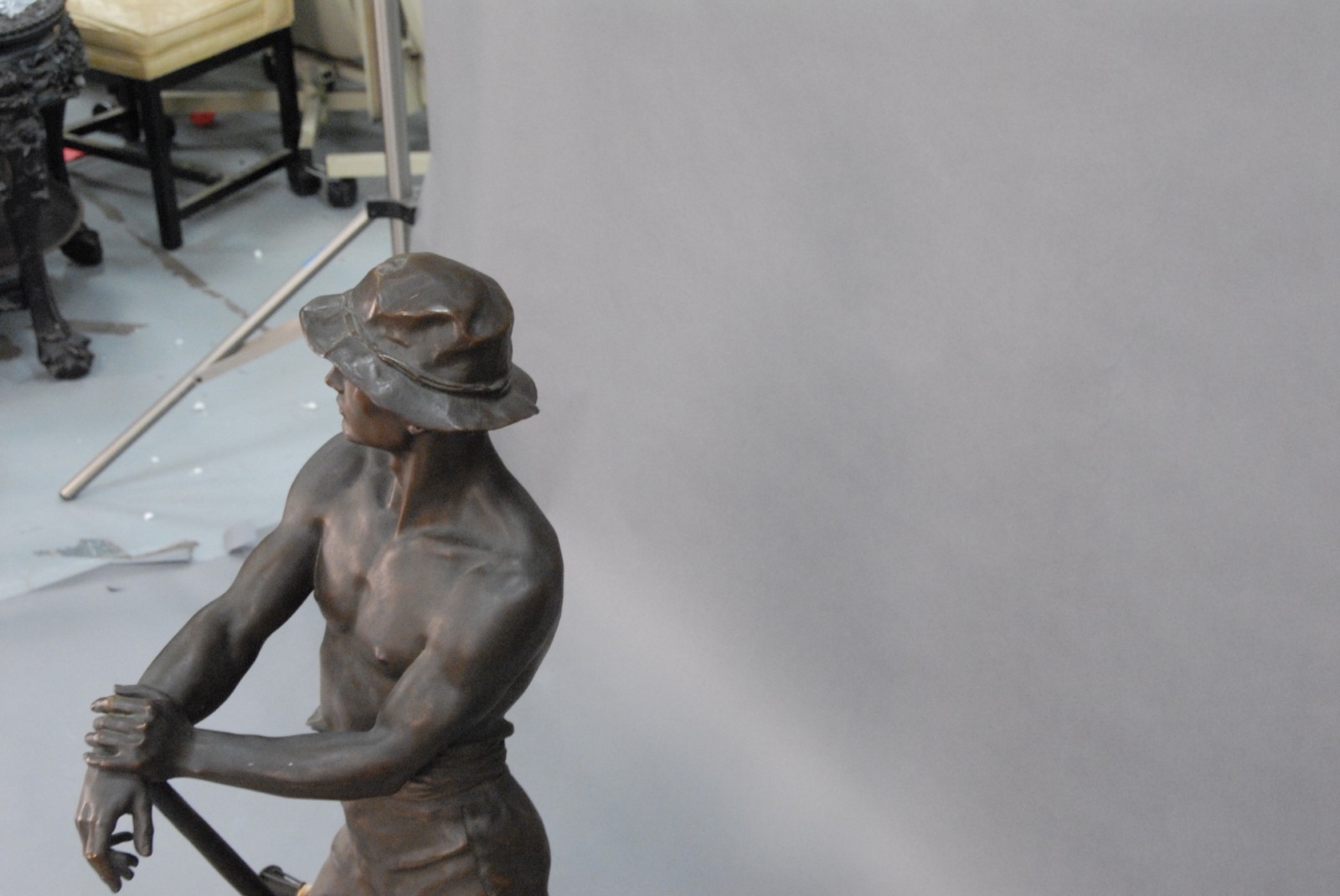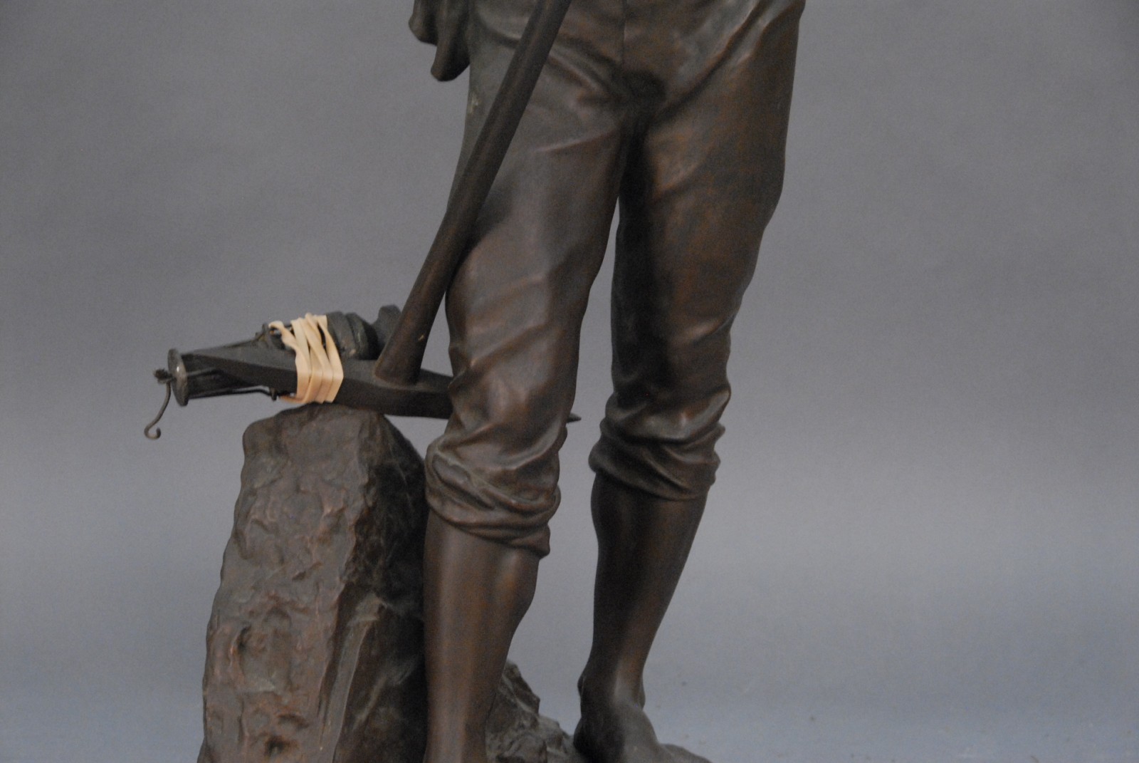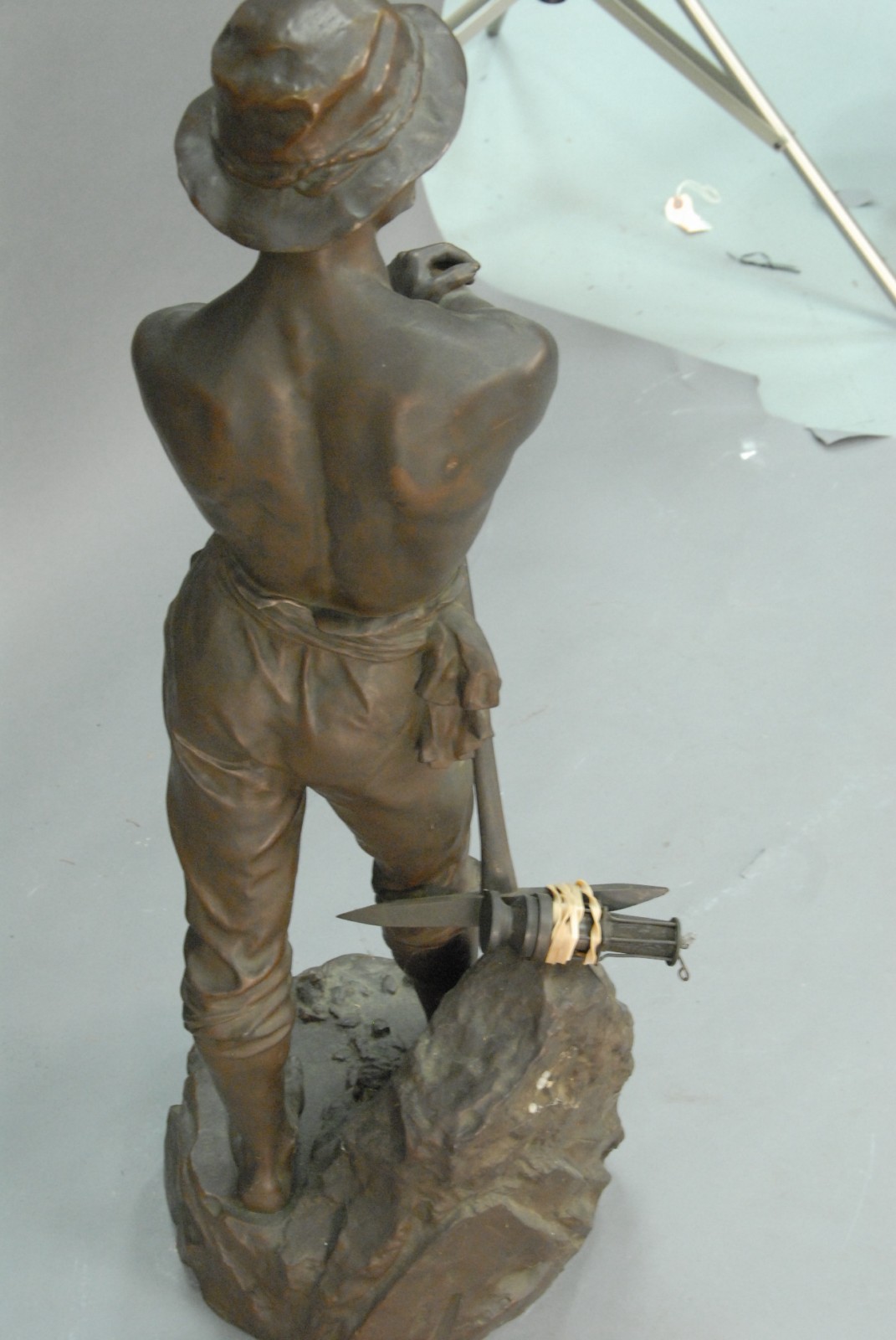 Charles Levy bronze sculpture of coal minor with hat, pick, ax and lantern signed Ch. Levy.