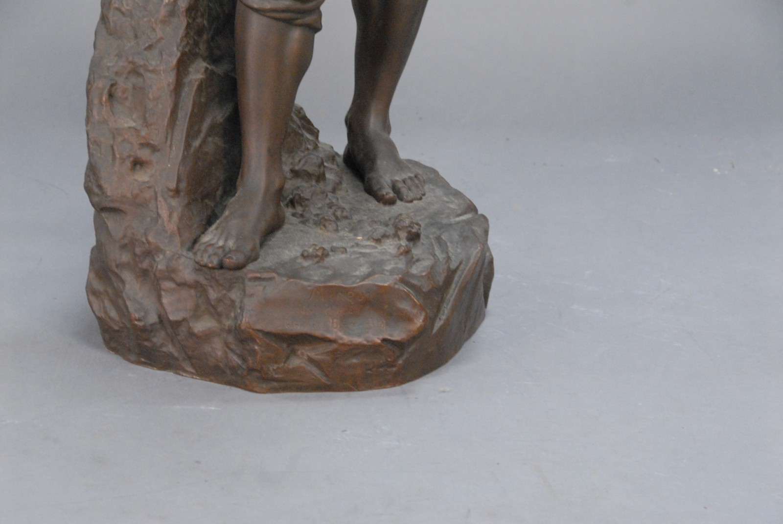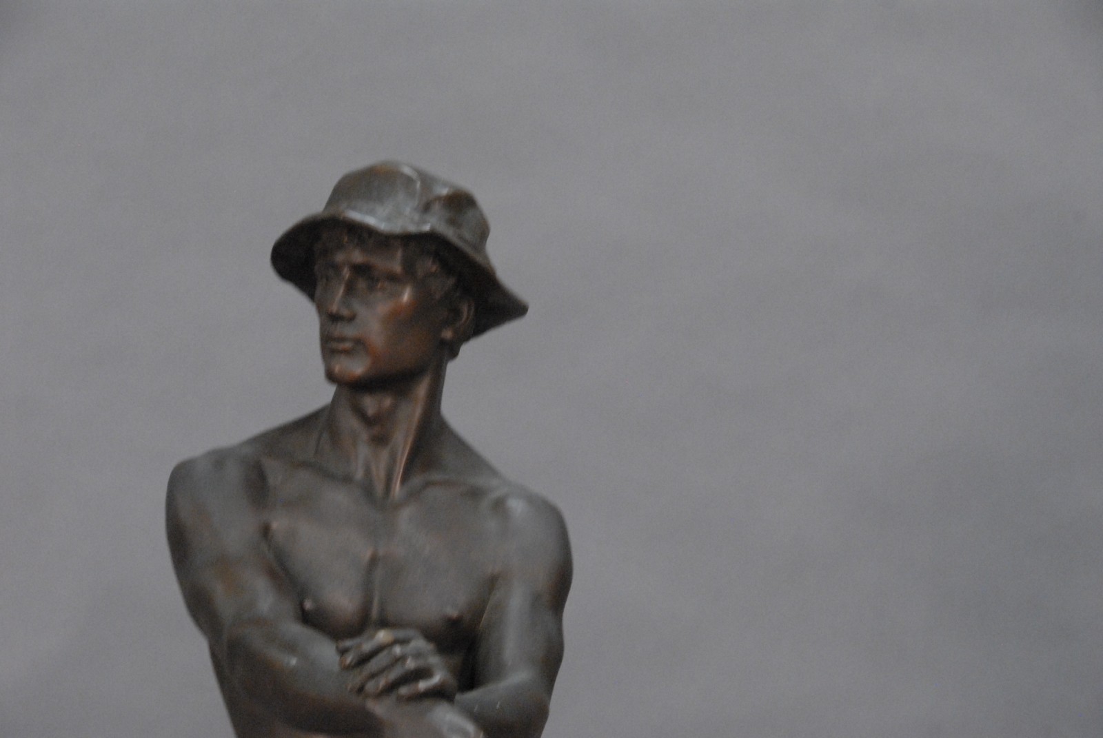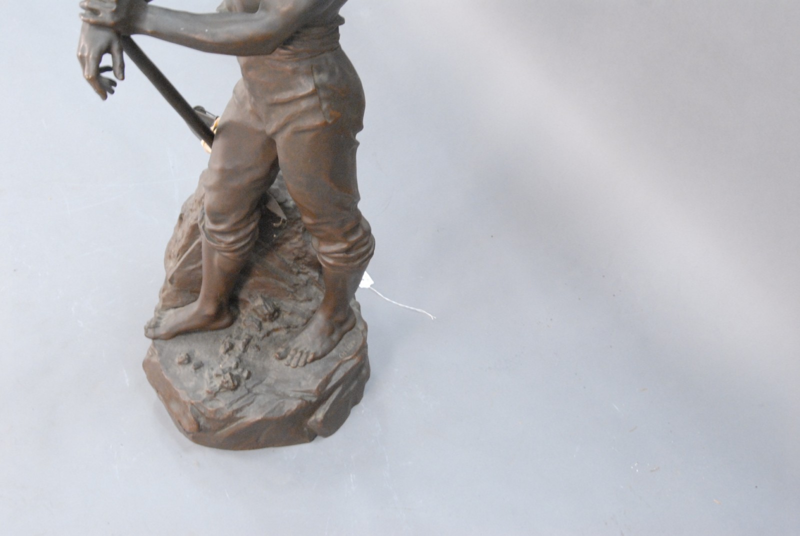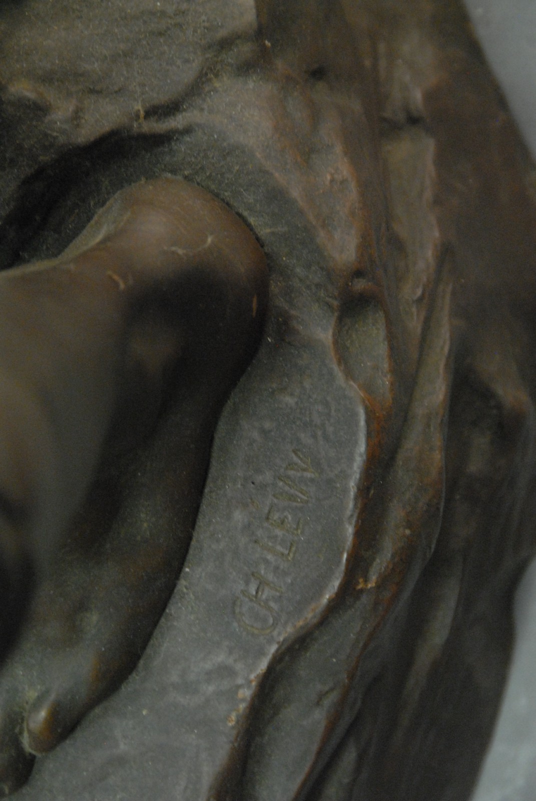 Charles Levy bronze sculpture of coal minor with hat, pick, ax and lantern signed Ch. Levy.