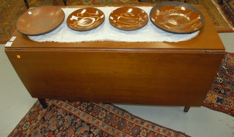 Lot 413: Cherry Federal drop leaf table. ht. 27in. lg. 47in. top open: 47 x 55 Being sold for a Museum in Connecticut.