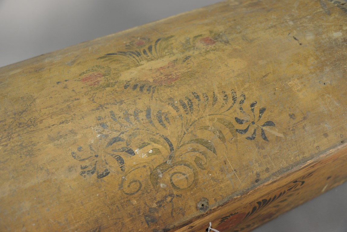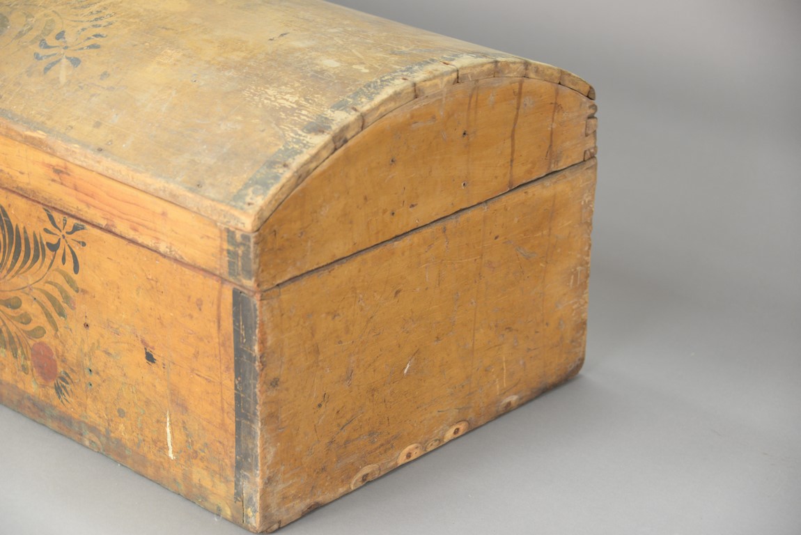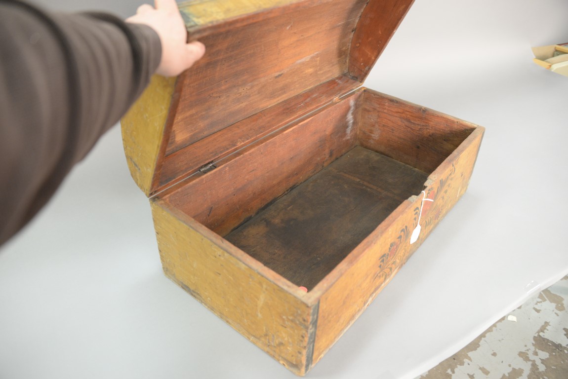 Lot 413: Domed top chest with lift top painted surface with flower decoration. ht. 12 1/2 in. wd. 30 in.