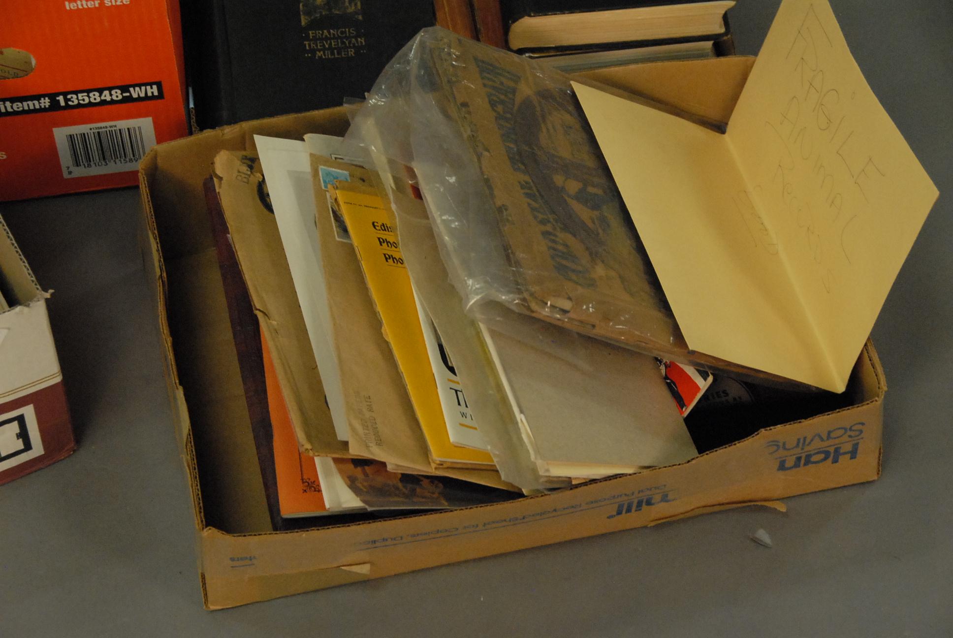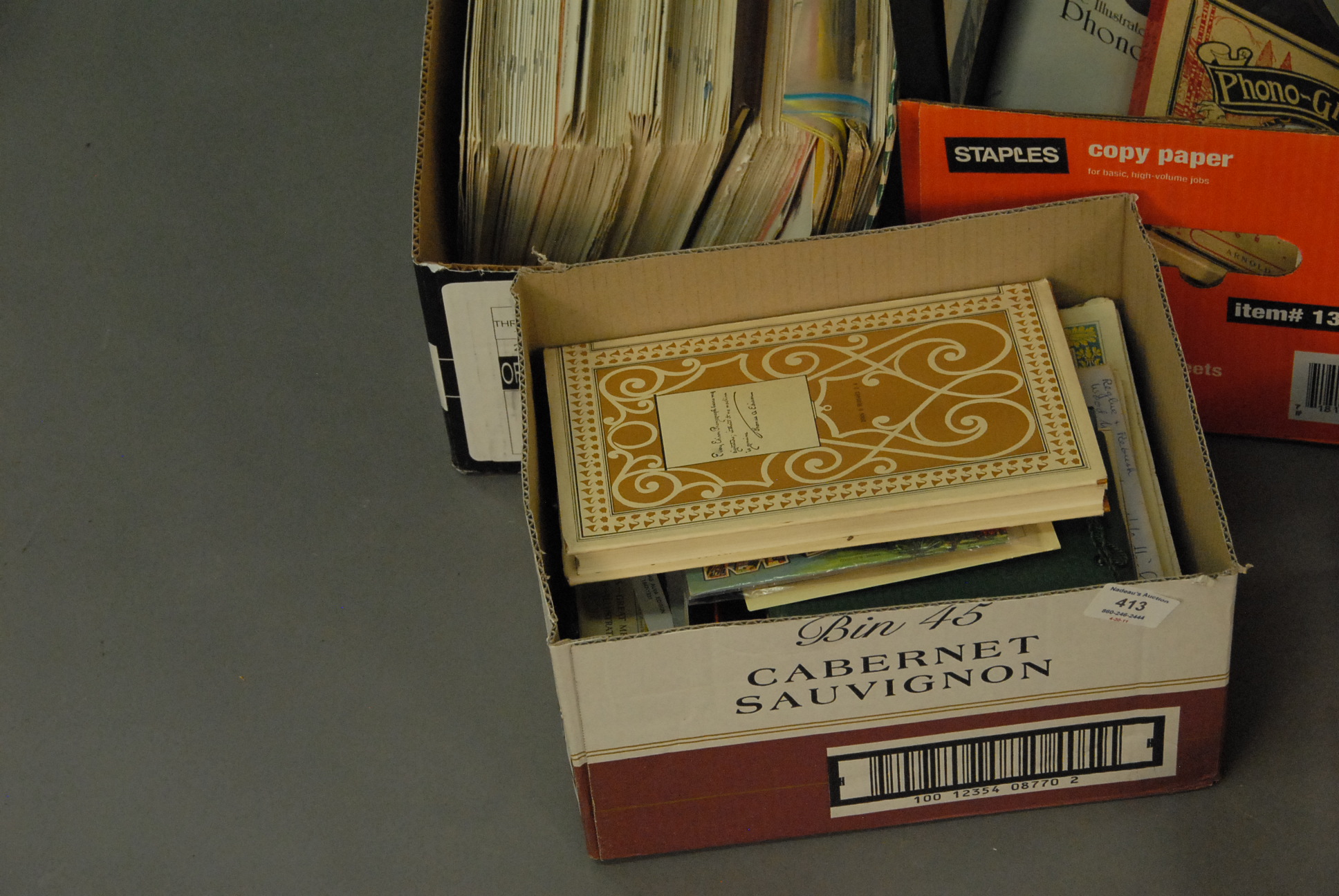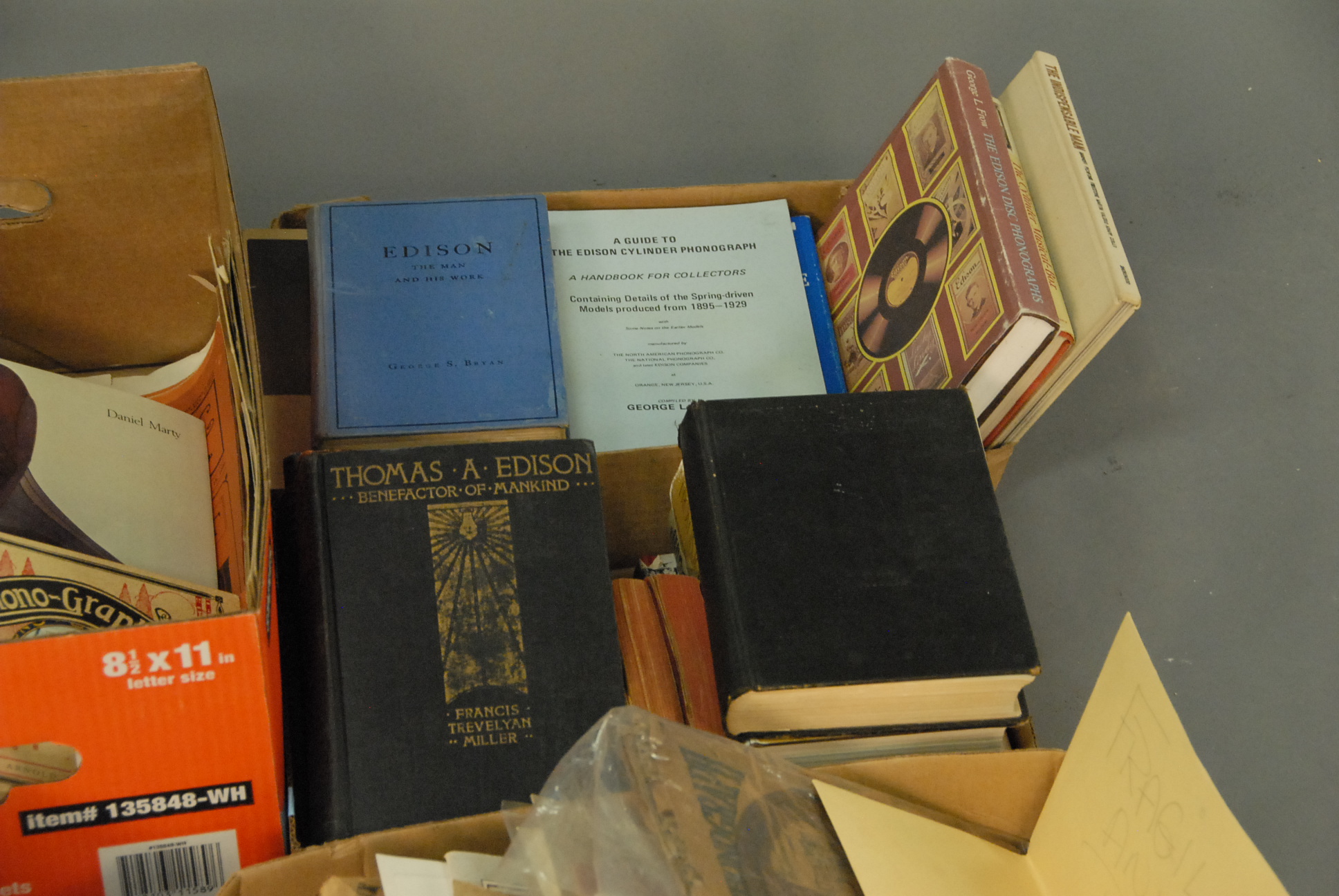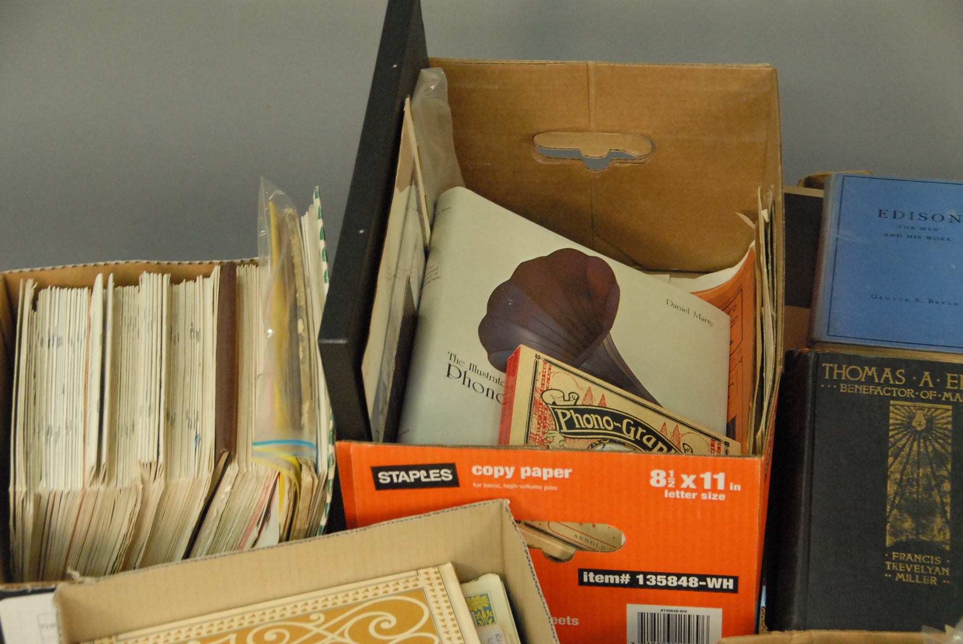 Five boxes of miscellaneous reference books and phonograph related papers.