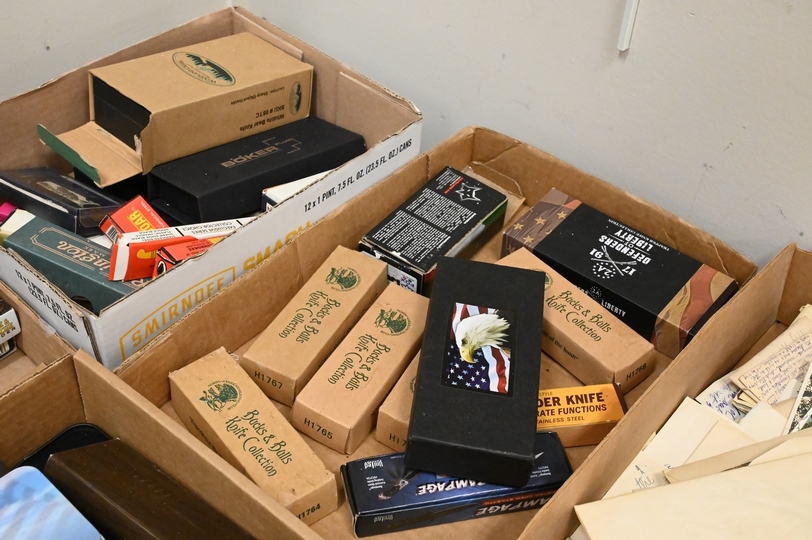 Lot 413: Four Tray Lots of Pocket and Buck Knives