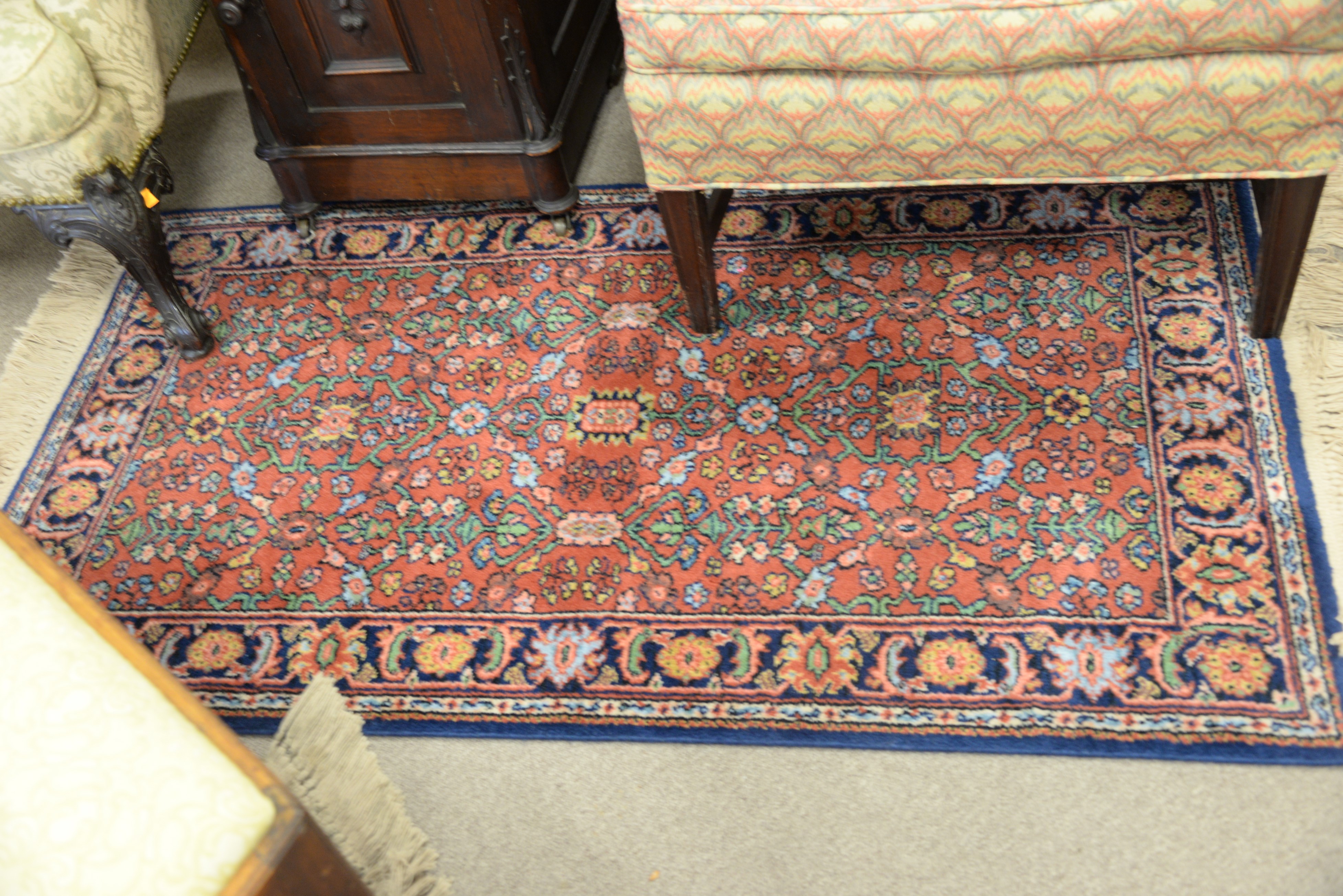 One Oriental throw rug, 3′ 1 x 5′ 6 and 2’10 x 5′.