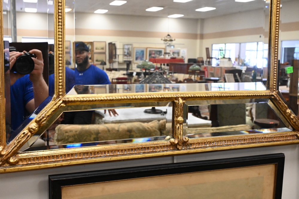 Pair of Contemporary Gilt Mirrors, having beveled glass, 44″ x 33″.