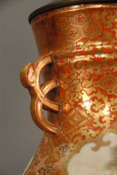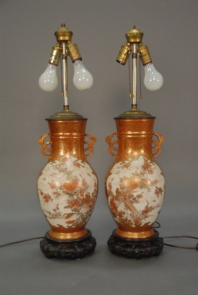 Pair of Samson porcelain vases made into table lamps. vase ht. 13 1/2in.