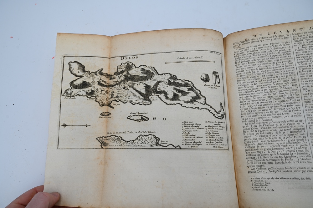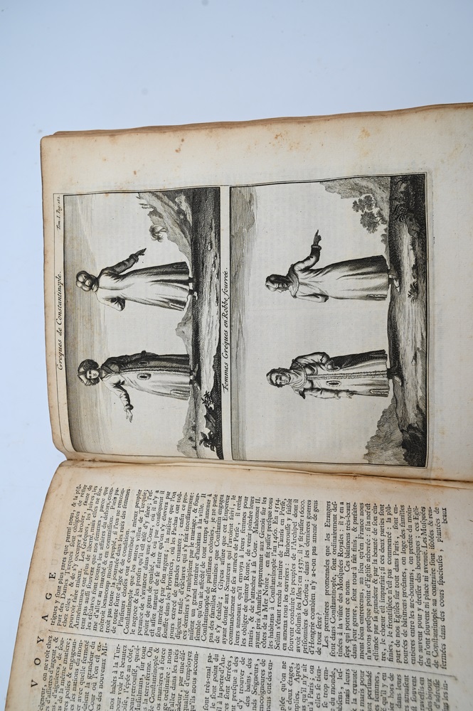 Relation D’un Voyage Du Levant Fait Par Ordre DU Roi Par M. Pitton De Tournefort, MDCCXVIII, Amsterdam, along with plates and maps, now in hyde covering.