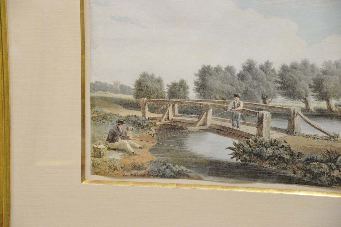 Lot 413: William James Bennett 1787-1844 Oxford Meadows Fishing watercolor on paper signed lower left: W. J. Bennett 14 1/2 x…