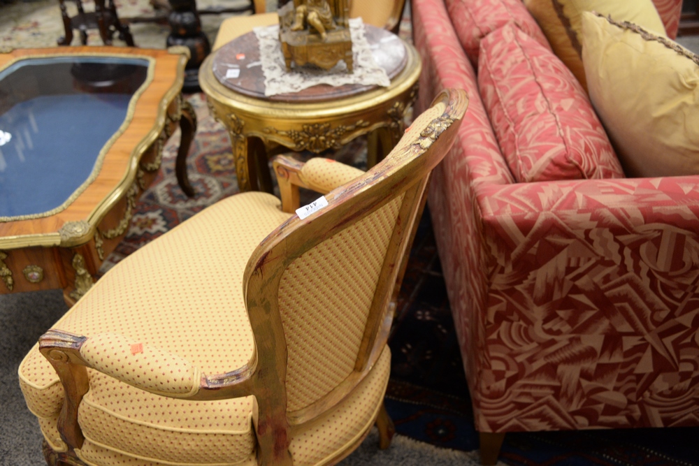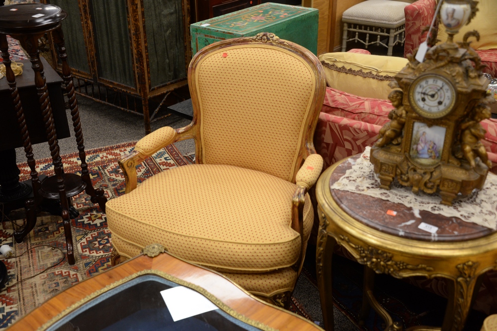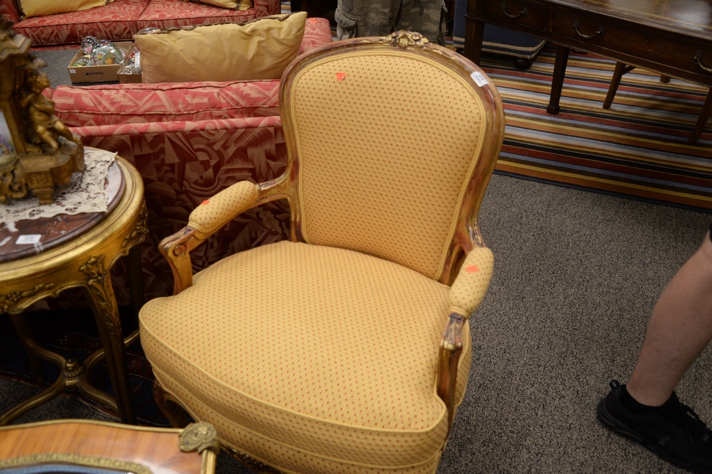 Lot 414: Devon Shops New York Custom Pair of Louis XV Style chairs, having custom upholstered seat, width 26 1/2 inches.