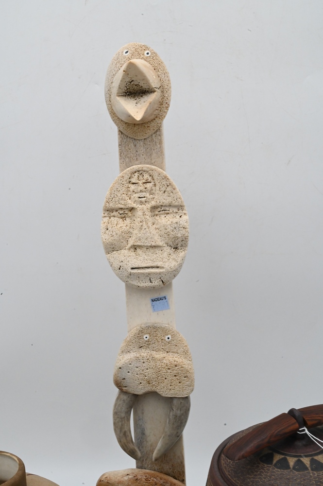 Group of Southwest Items, to include pottery vases, Ron Ekemo whale bone totem pole, Rose Lewis Santa Clara black pottery vase marked M.Leno Acoma pot, etc.; tallest 24 1/2 inches.