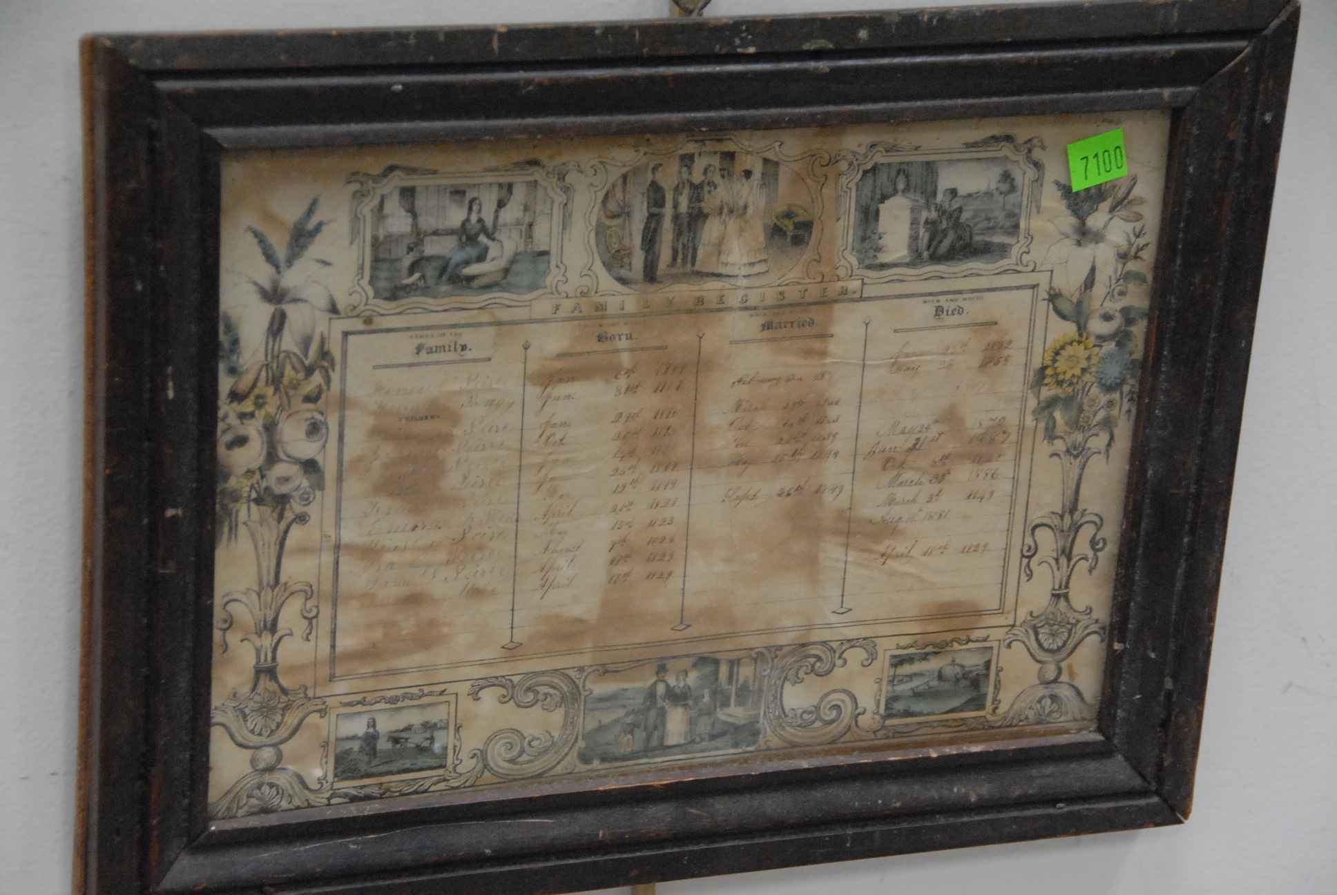 Lot 414: Group of three pencil signed prints including family register, US Service Discharge print, and monumental print.
