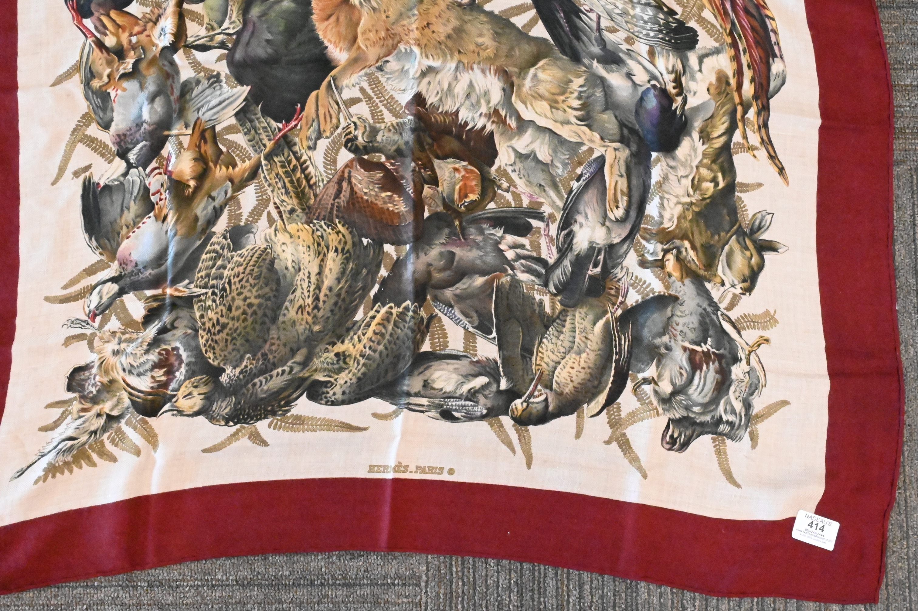 Lot 414: Hermes Paris “Gibiers” Cashmere and Silk Scarf