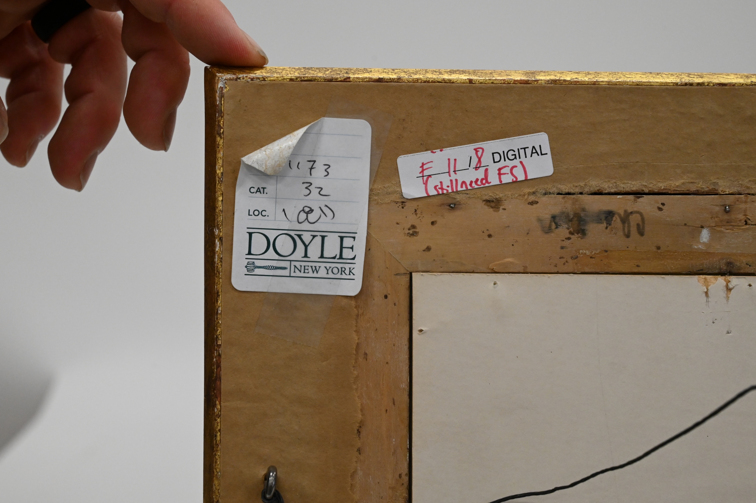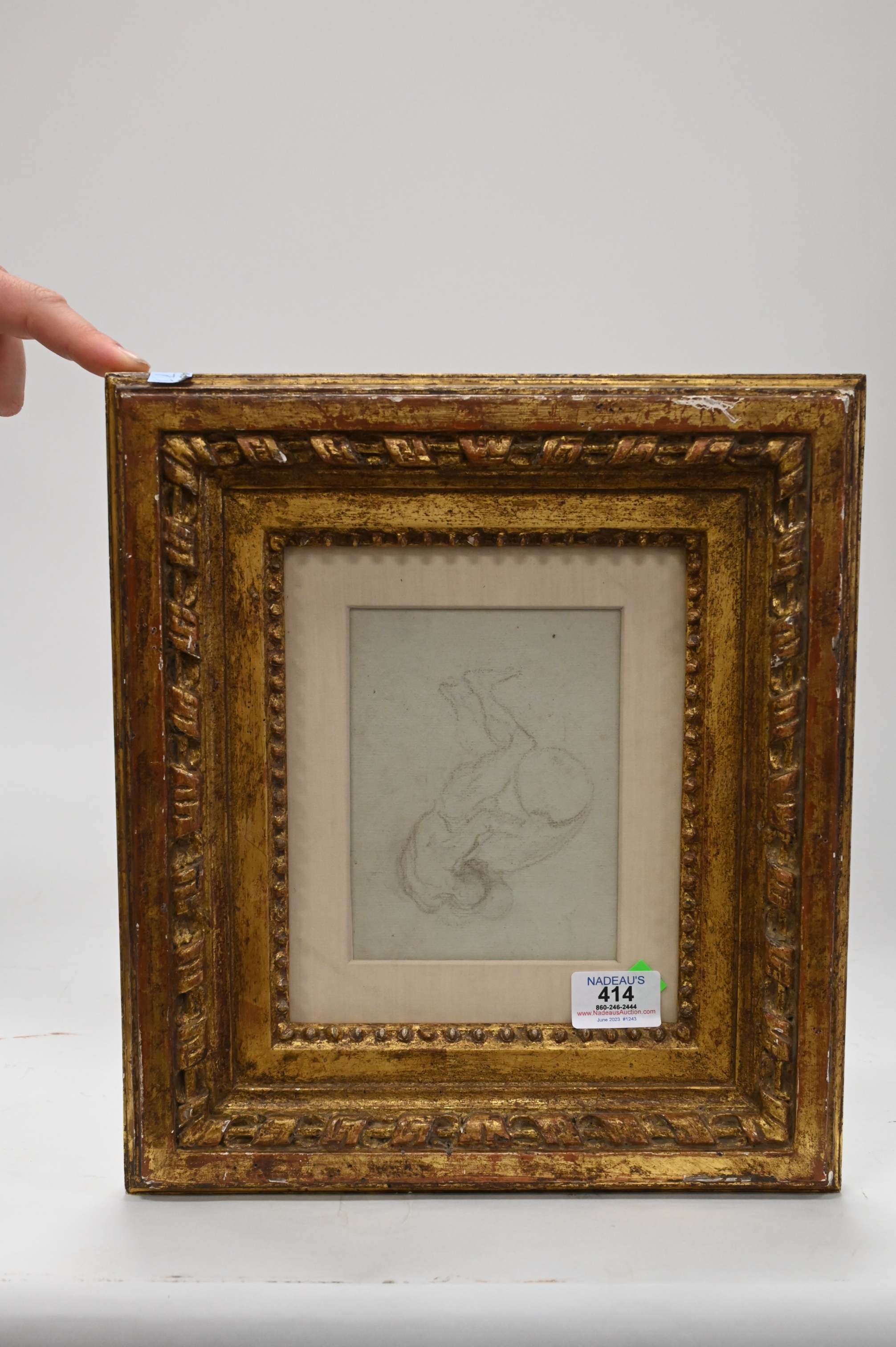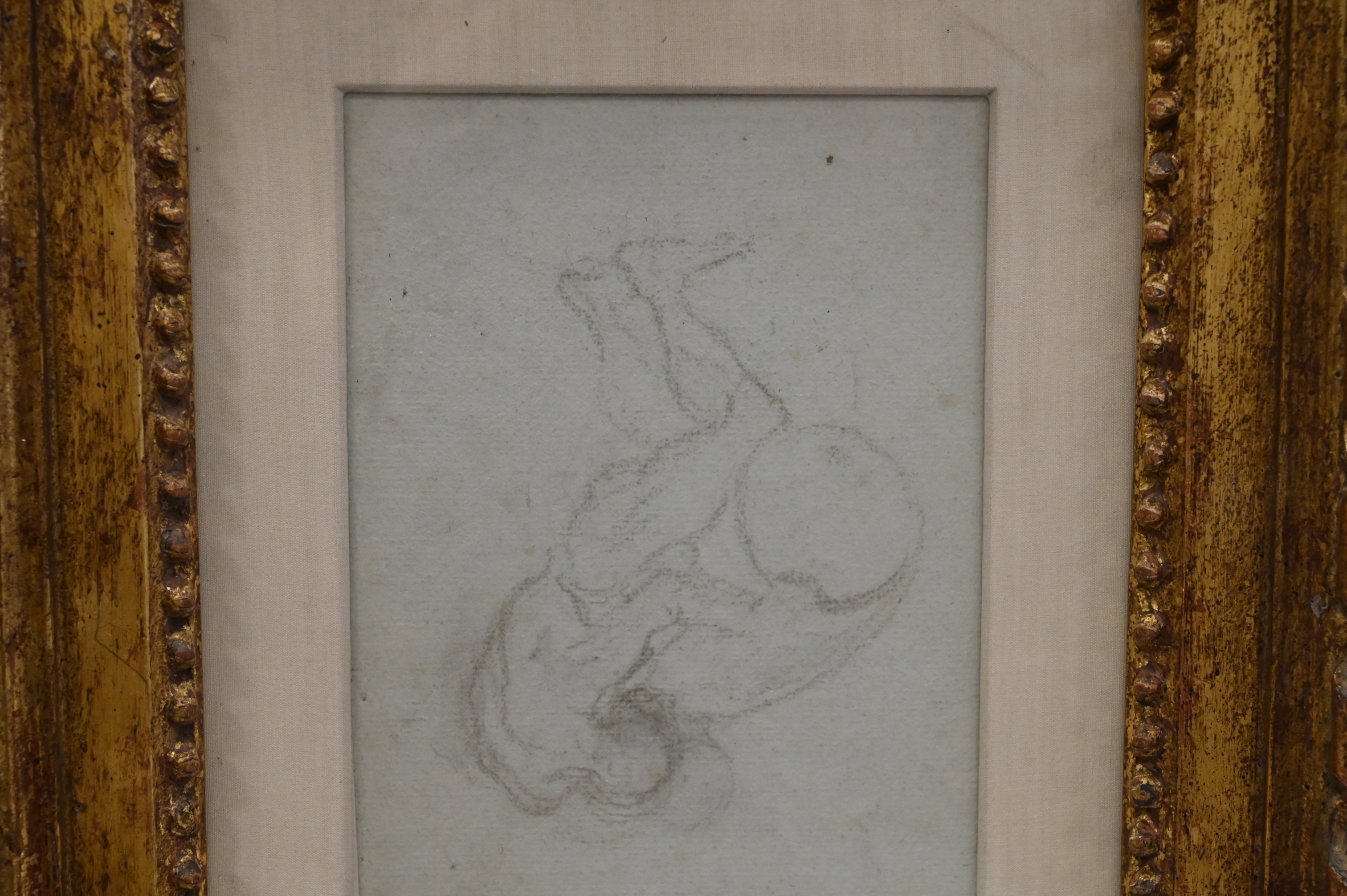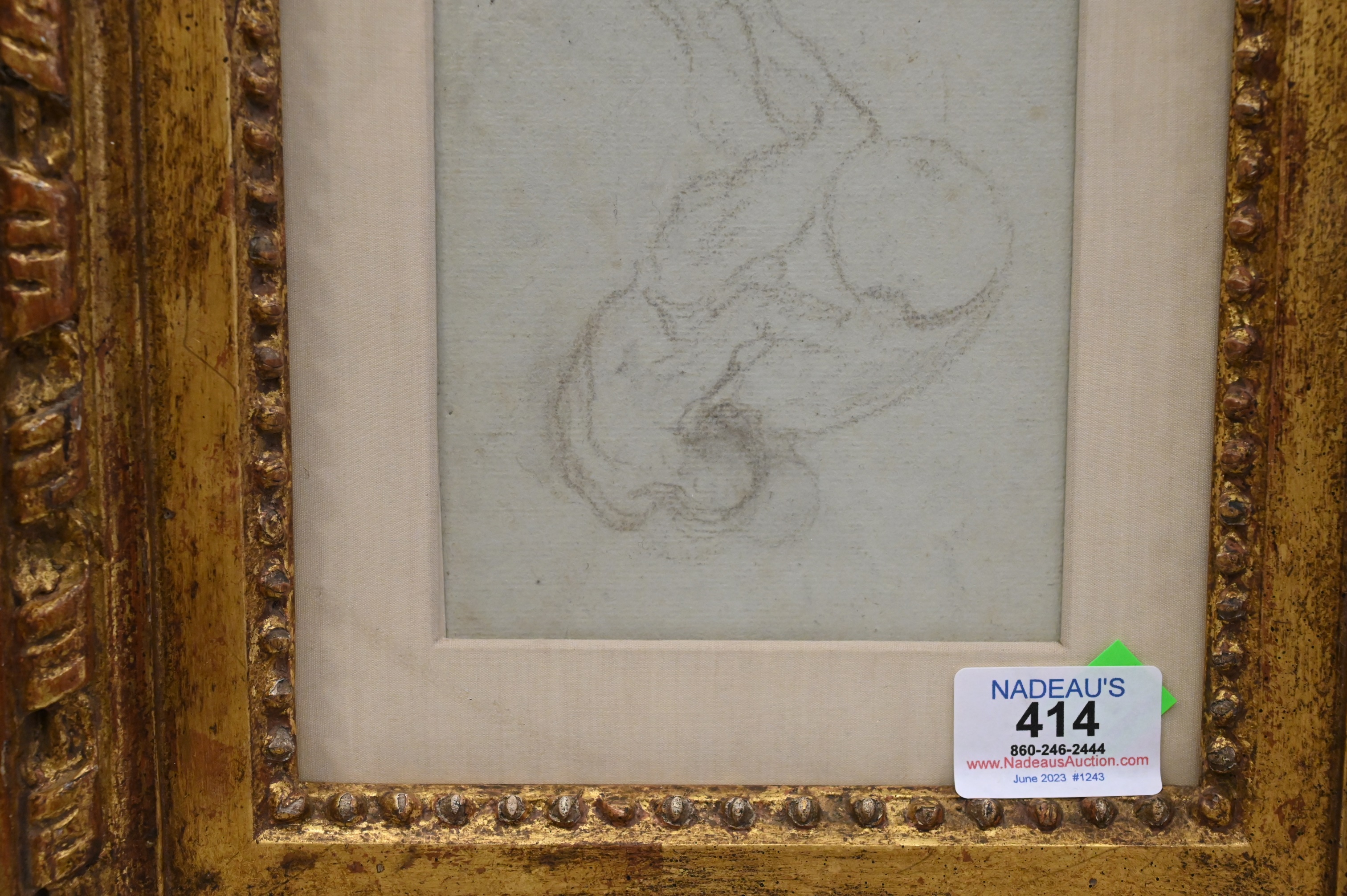 Honore Daumier (1808-1879) “Man Lifting a Barrel” pencil on blue paper unsigned 5 3/4″ x 4 1/2″