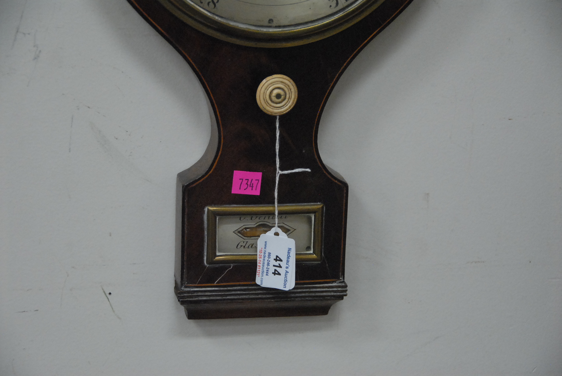 Lot 414: Mahogany barometer, C. Gerletti Glasgow. ht. 39 in. wd. 10 in. Provenance: Property from The Estate of W. Scott Van Alstyne of Essex, Connecticut.