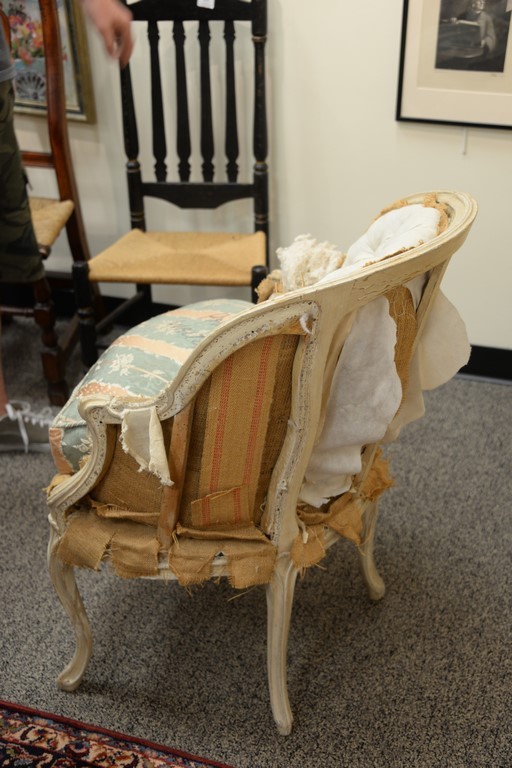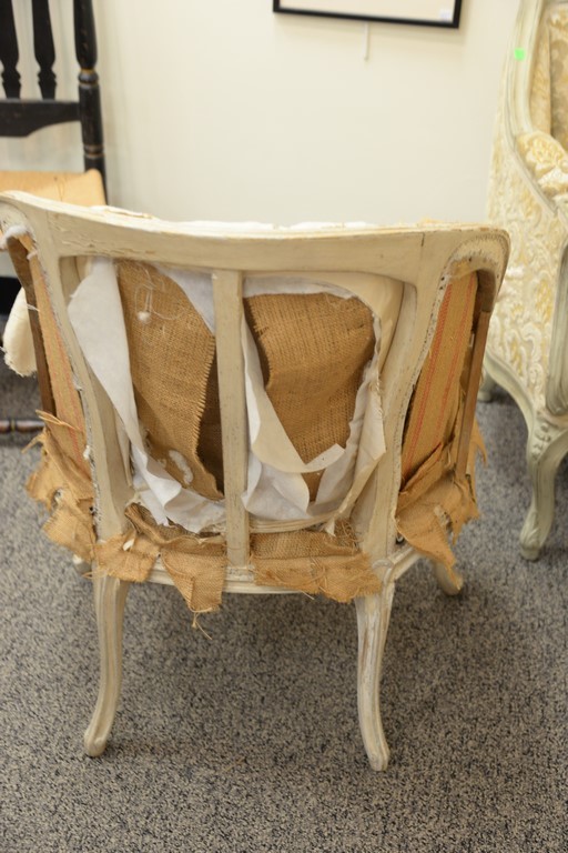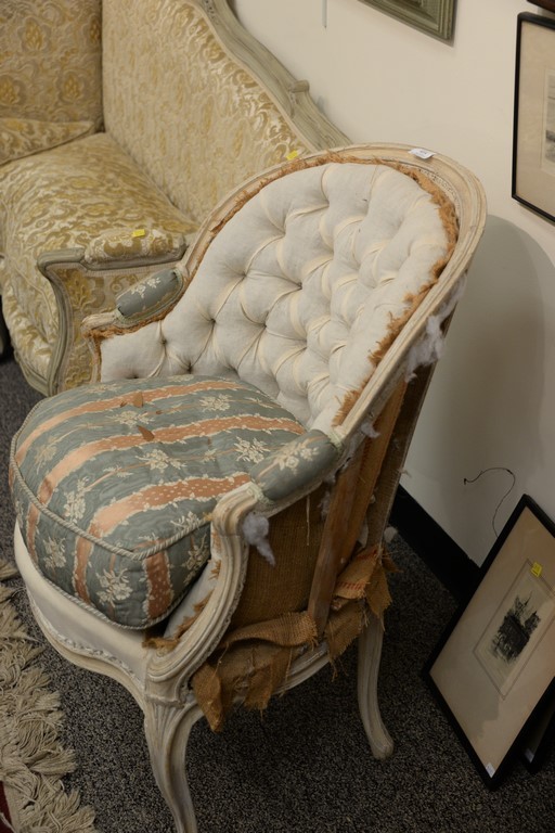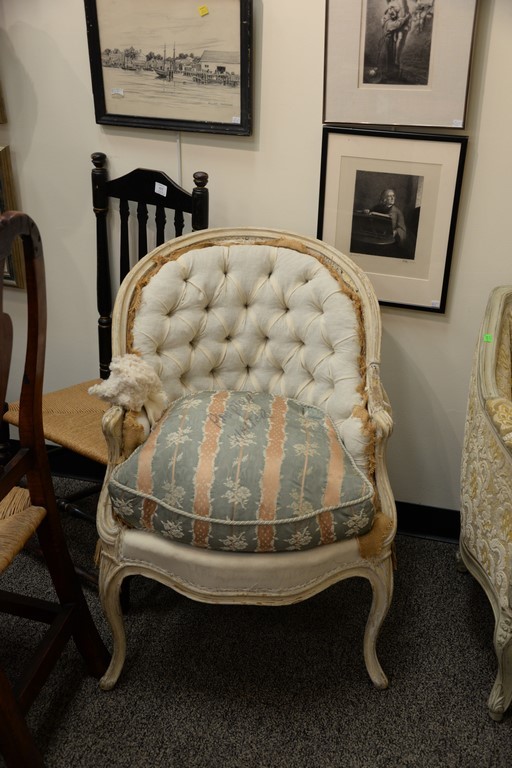 Lot 414: Pair of Louis XV style bergere with tufted backs and down cushions.