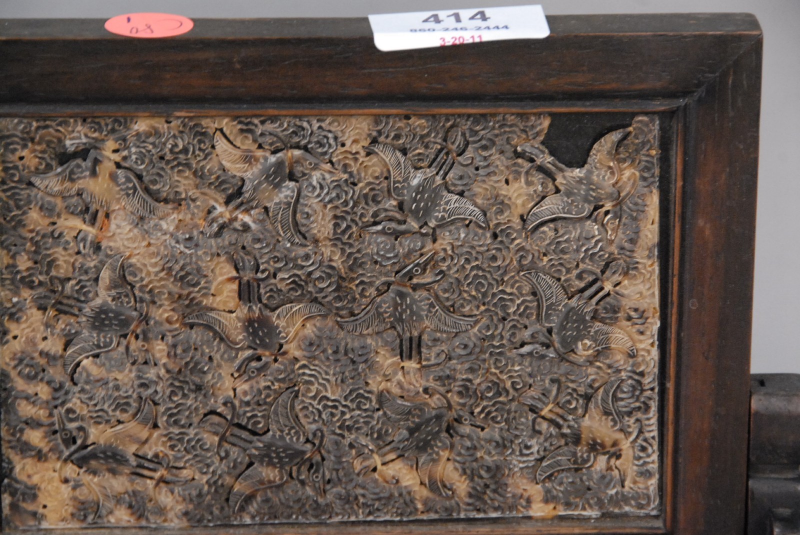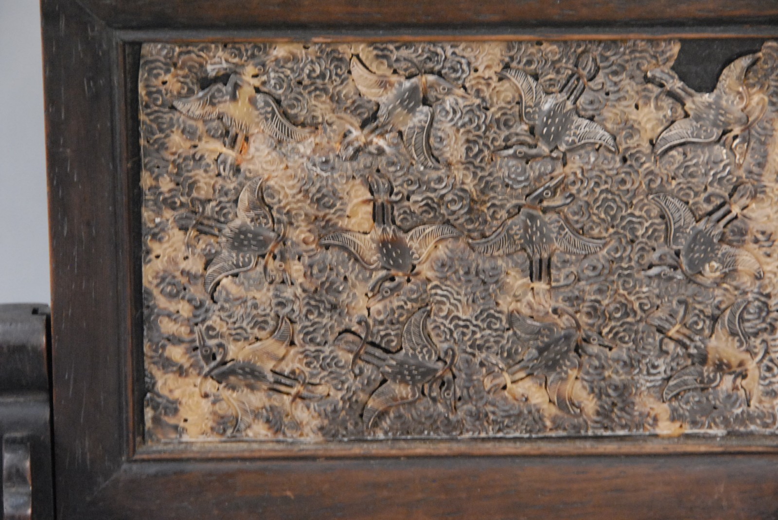 Small Chinese tortoise-shell screen depicting flying cranes, as is, early 20th century.