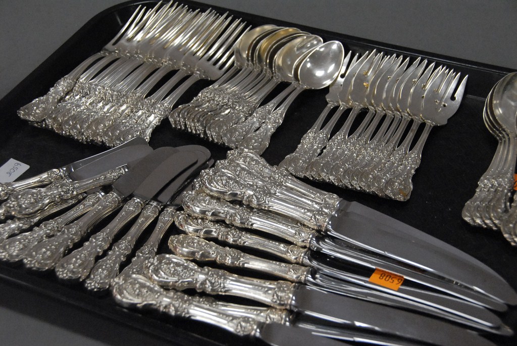 Lot 414: Sterling silver flatware Francis I setting for twelve consisting of 12 dinner forks, 12 salad forks, 12 teaspoons, 12 soup spoons, 1…