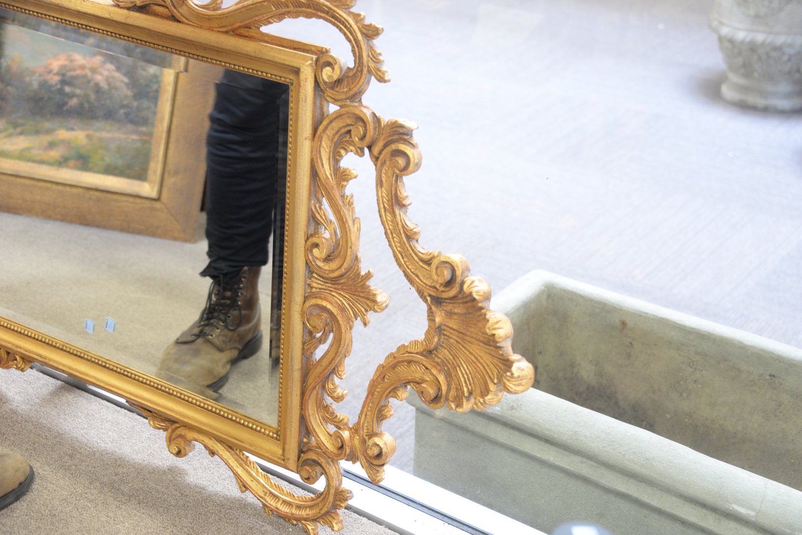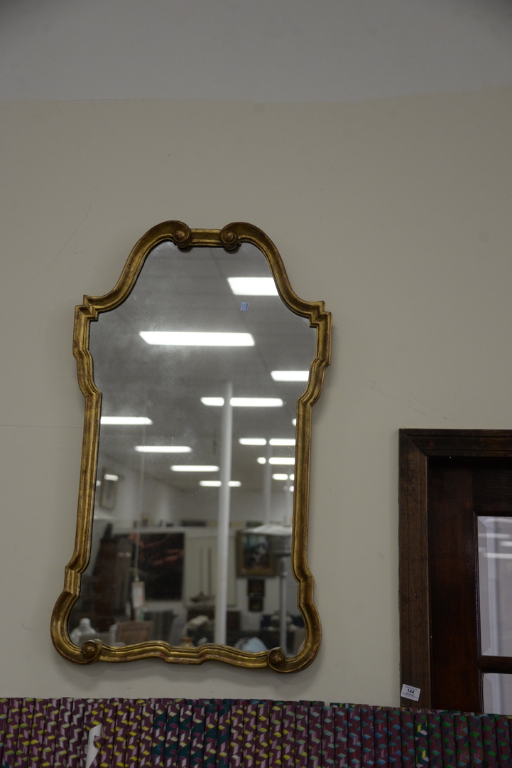 Lot 414: Two Framed Mirrors to include a Chippendale style mirror with gold frame, height 54 inches, width 30 inches, along with a Queen Anne style mirror.