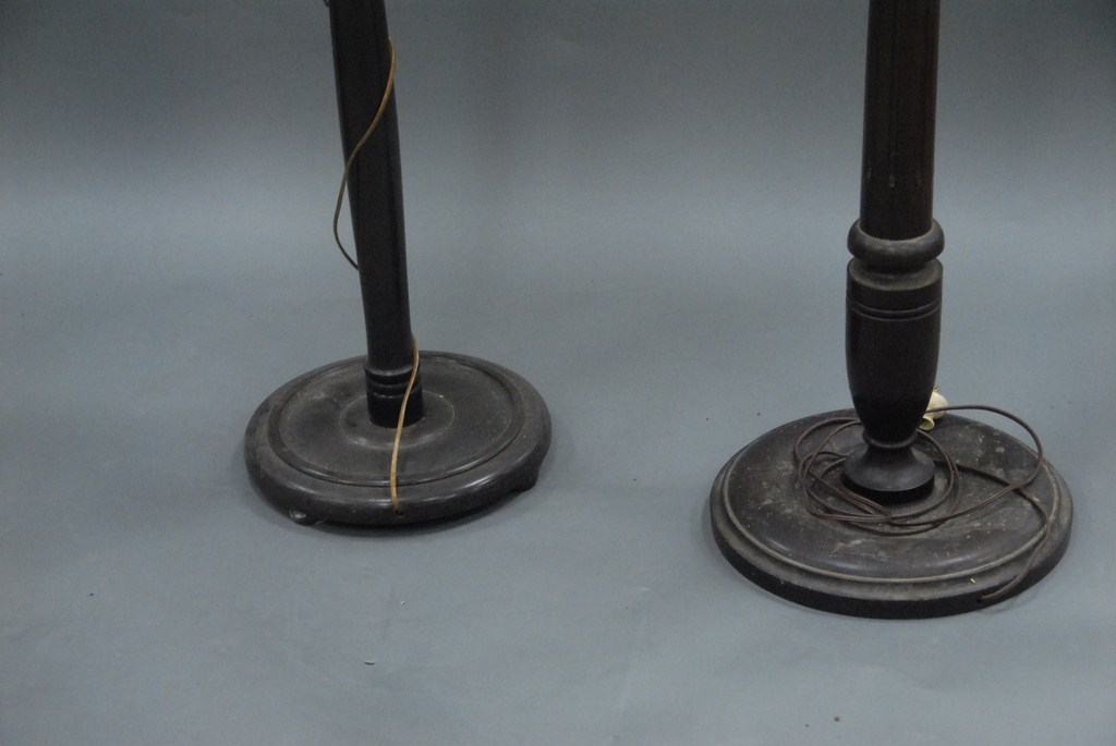 Two wooden floor lamps.