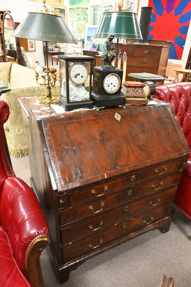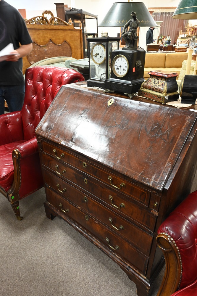 Lot 415: George III Walnut Slant Front Desk, circa 1760, height 40 inches, width 36 inches.