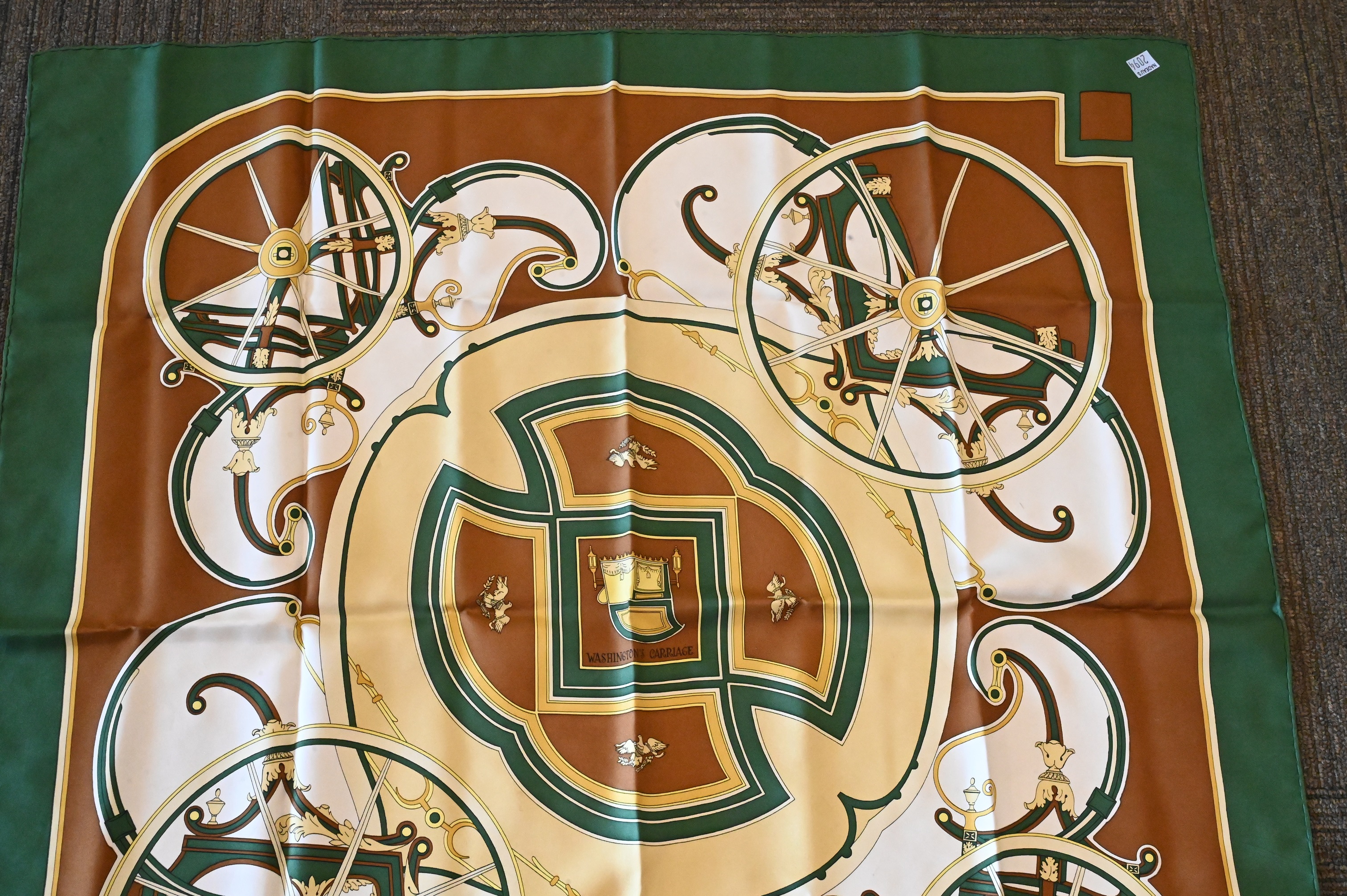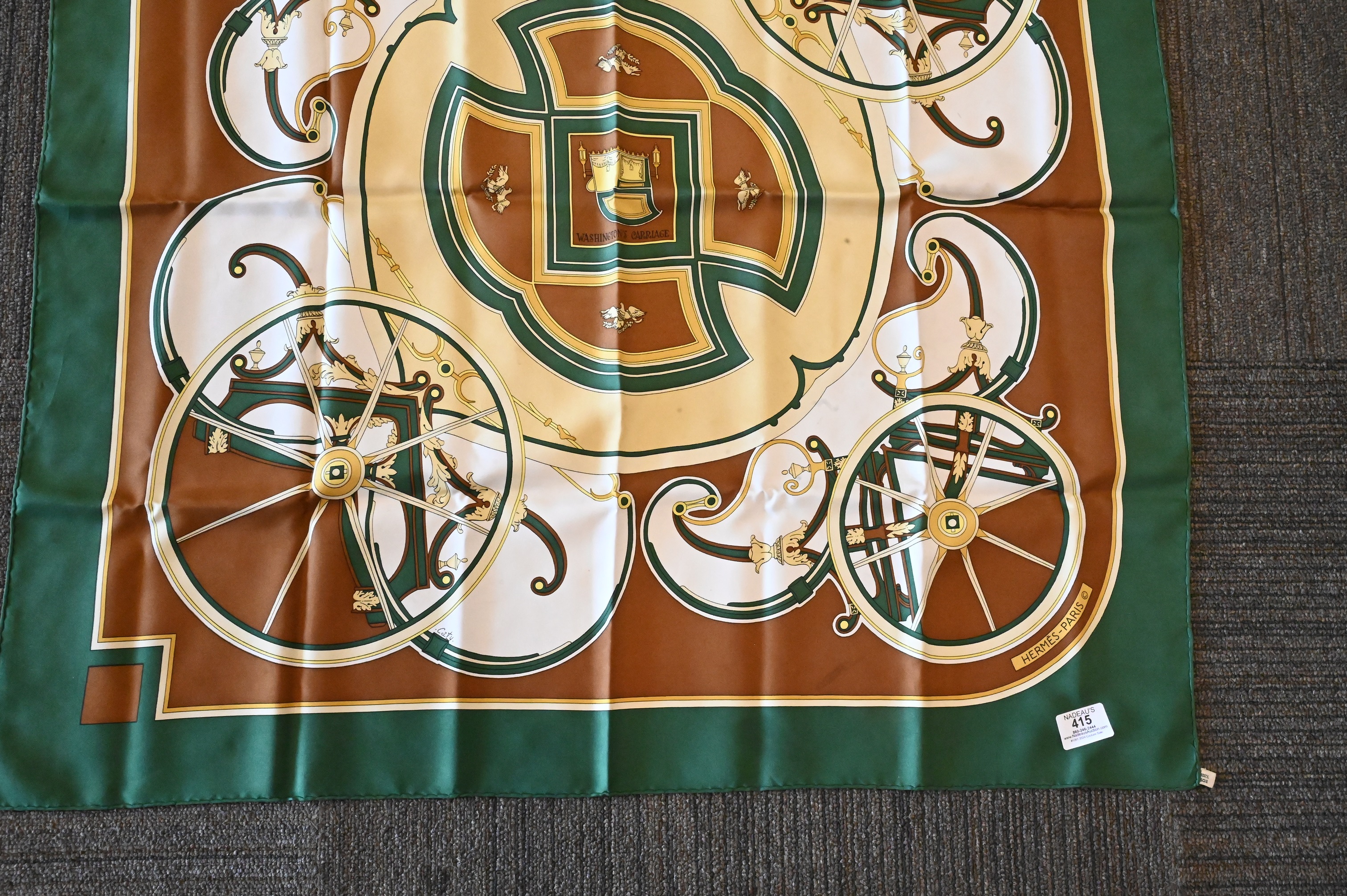 Lot 415: Hermes Paris “Washington’s Carriage” Silk Scarf