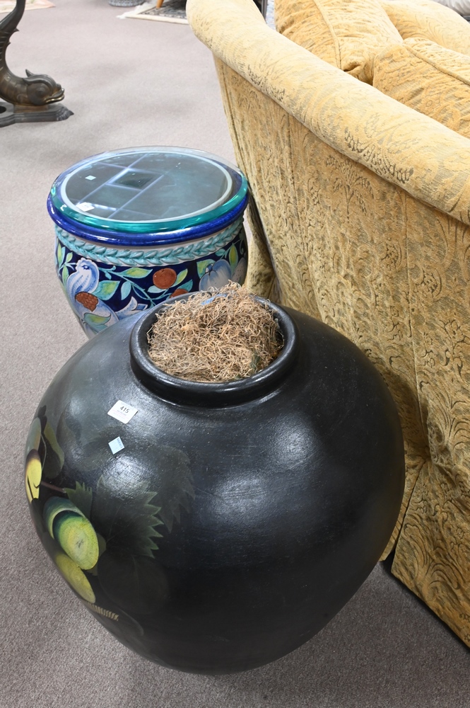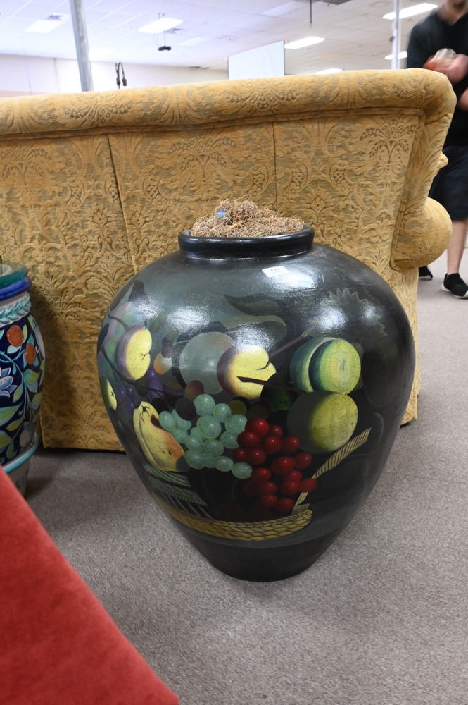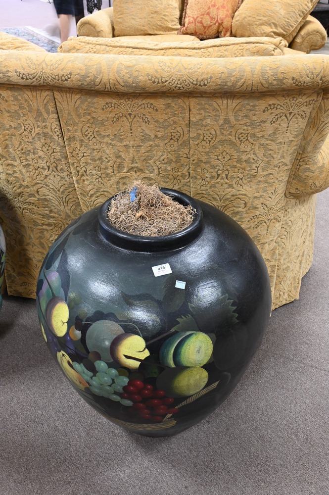 Large Contemporary Planter, having painted fruit exterior, height 27 inches, diameter 23 inches.