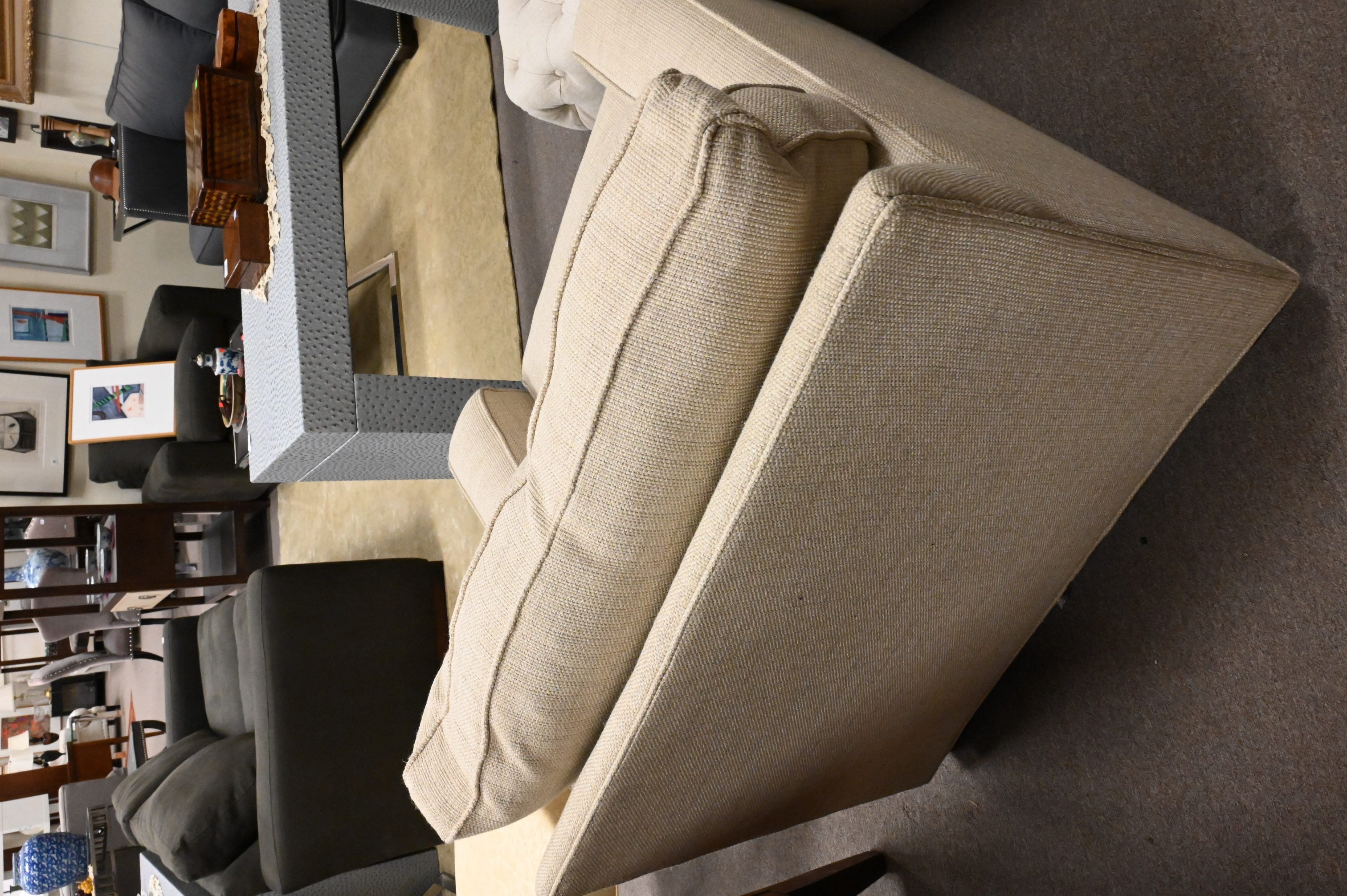 having beige linen upholstery