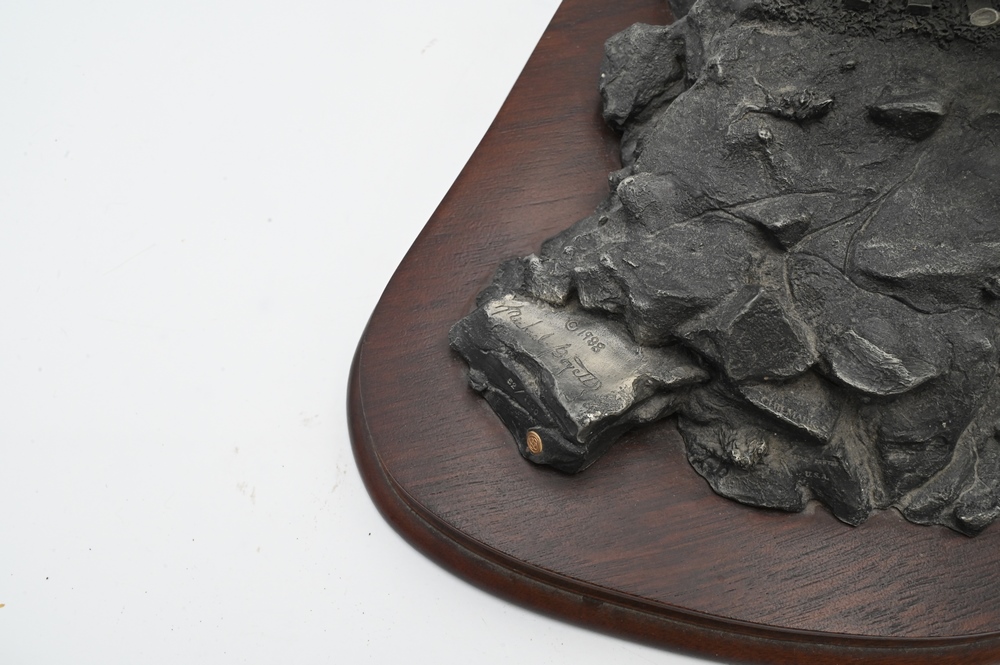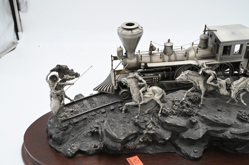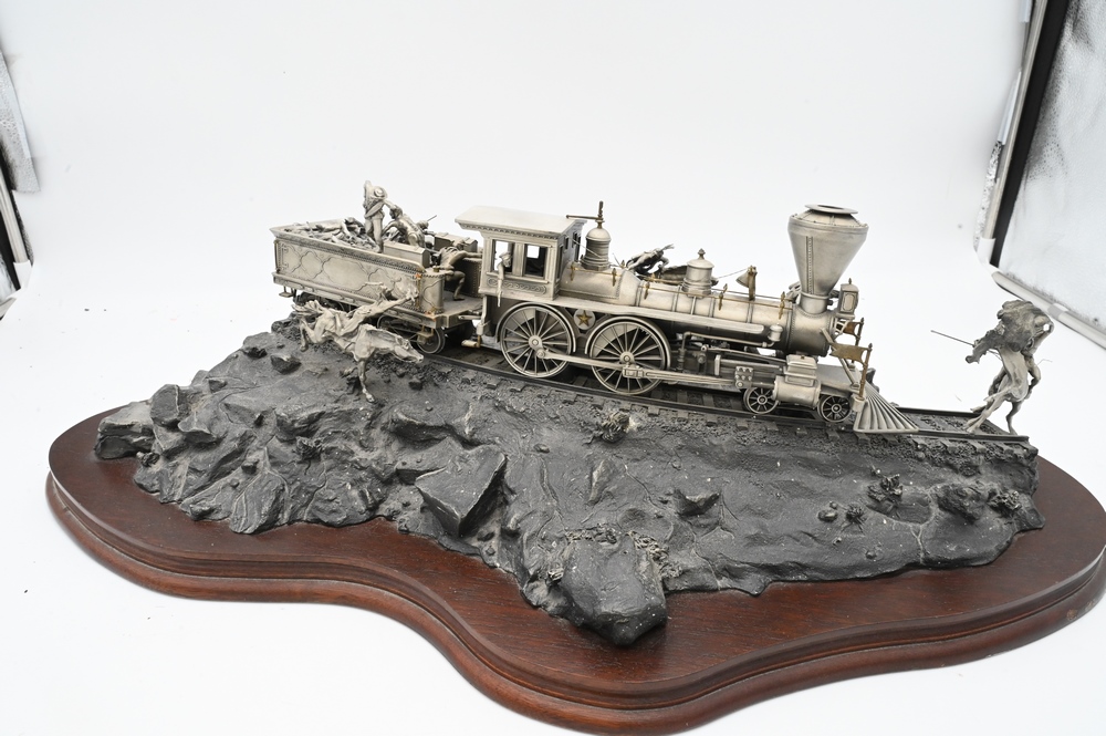 Lot 415: Michael Boyett Pewter Sculpture, Attack on the Iron Horse, limited edition sculpture, height 7 inches, length 25 1/2 inches. Provenance: Collections of Norma Reilly, New Jersey.
